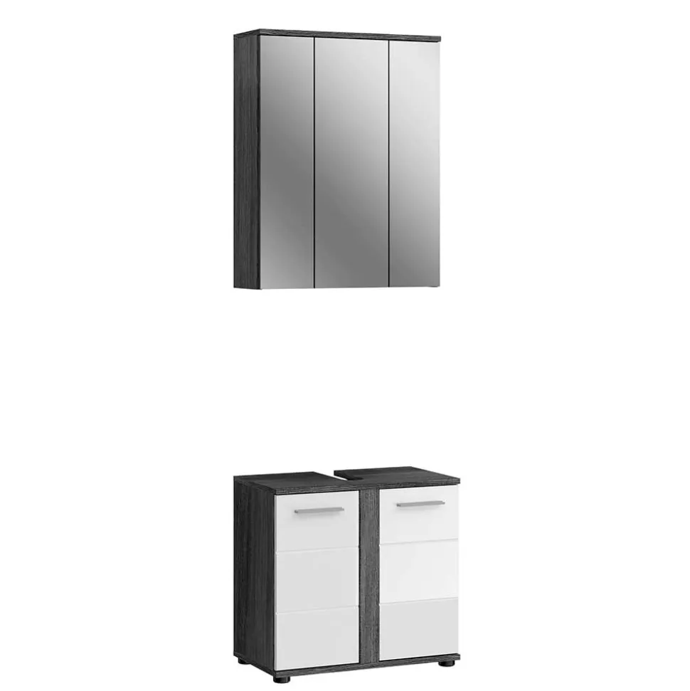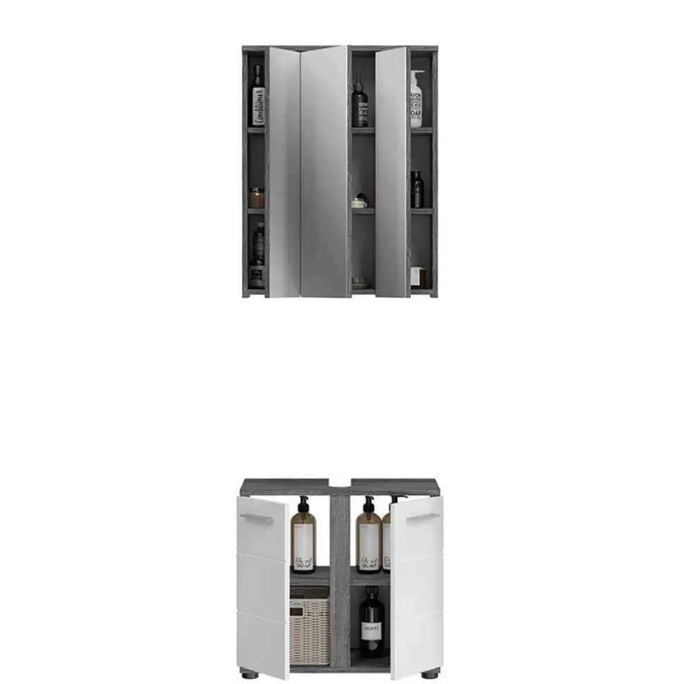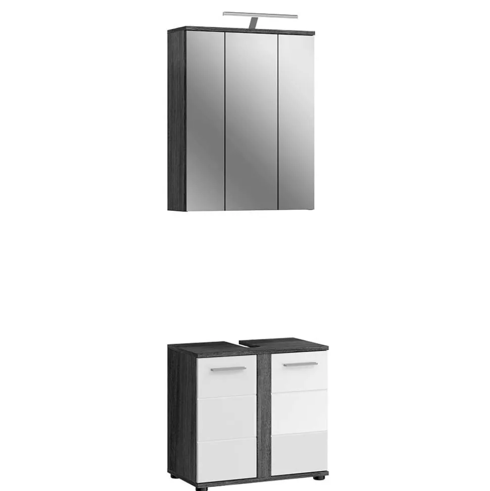- Dezentes Badmöbel Set in Weiß und Rauchgrau