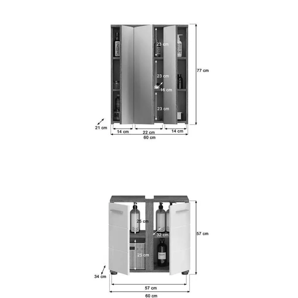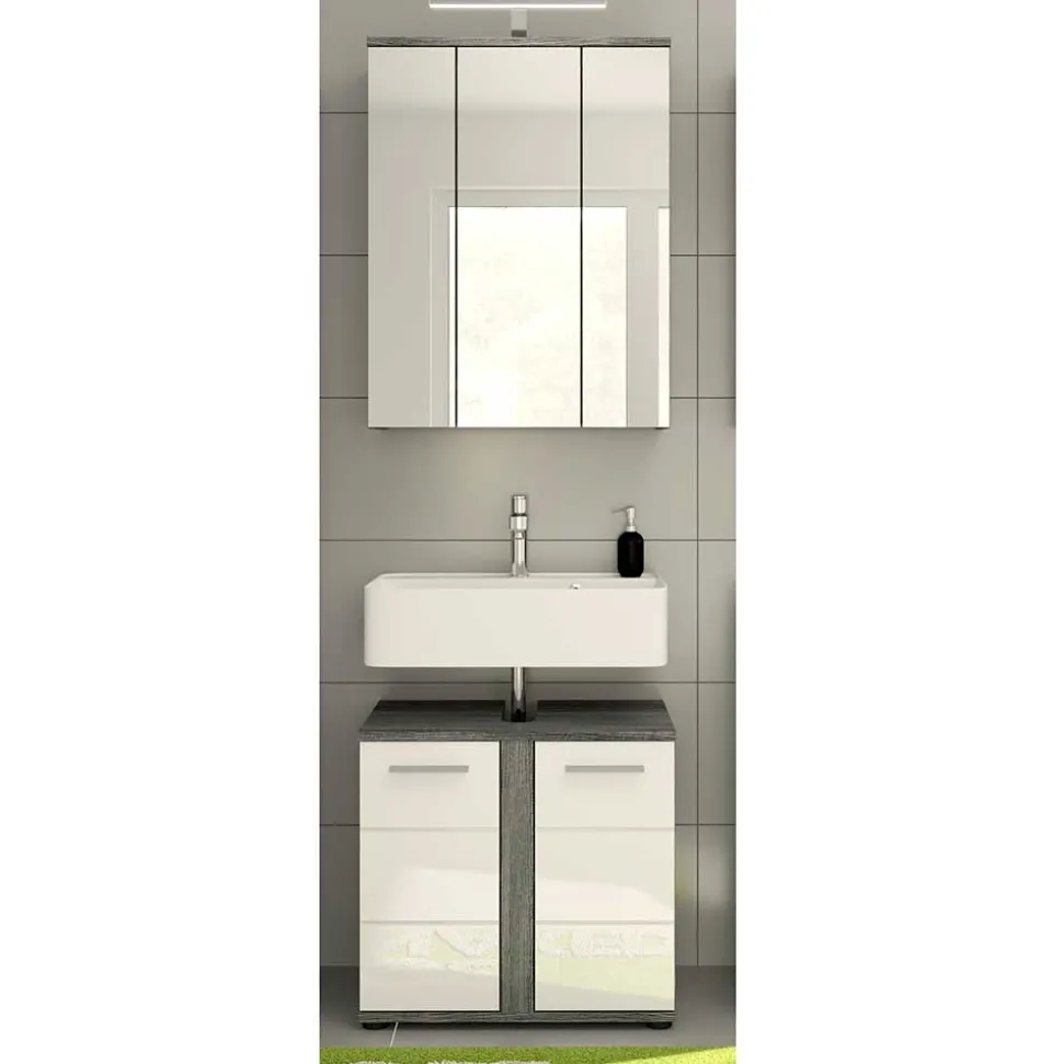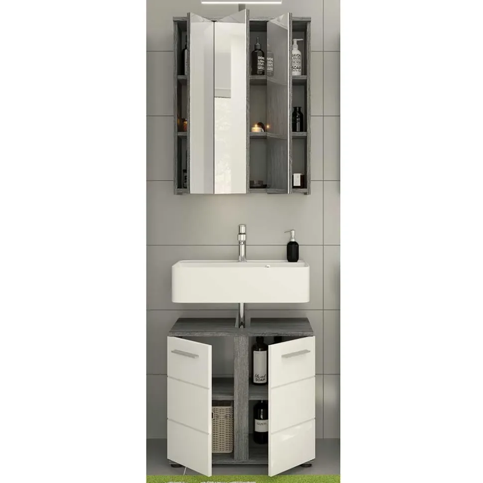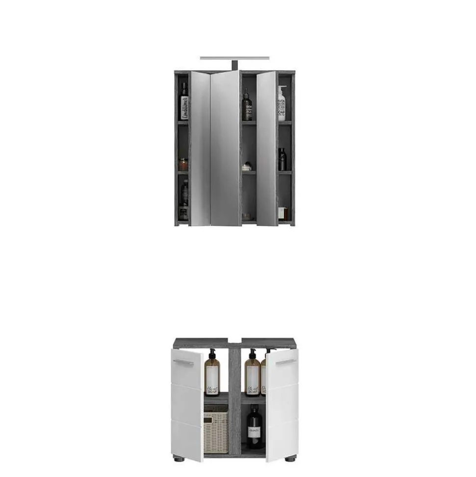 - Dezentes Badmöbel Set in Weiß und Rauchgrau