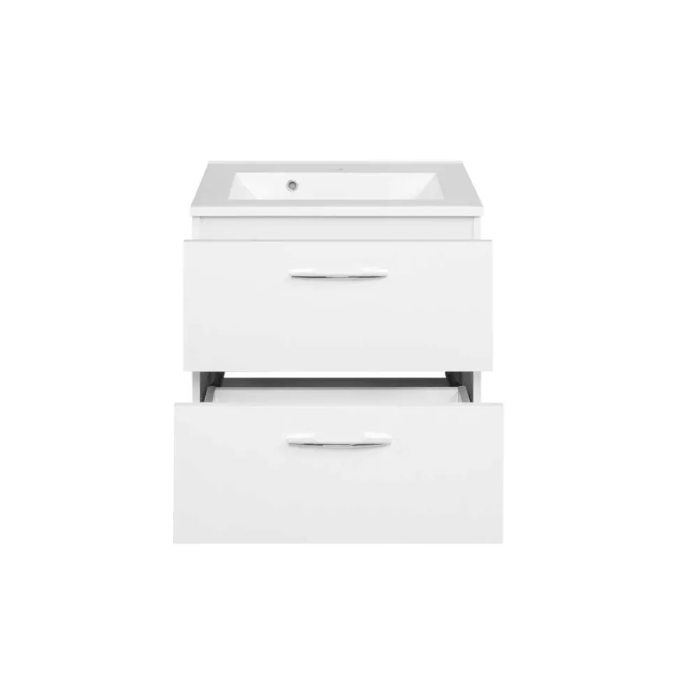 Die vorgebohrten Löcher für Armaturen sparen Zeit und erleichtern die Montage erheblich – ideal für eine schnelle und unkomplizierte Einrichtung. Die robusten Metallgriffe ergänzen das moderne Gesamtbild und liegen angenehm in der Hand. Durch die einfache Wandmontage wirkt der Waschtisch besonders leicht und schwebend – eine raffinierte Lösung, die nicht nur optisch begeistert, sondern auch das Reinigen des Bodens erleichtert.