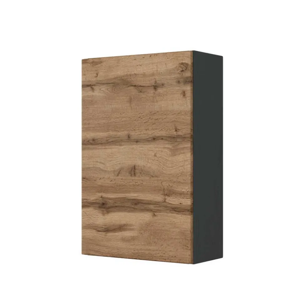 - Kratzfeste Oberflächen, Front in Holzoptik Wildeiche foliert, Korpus in Dunkelgrau melaminbeschichtet