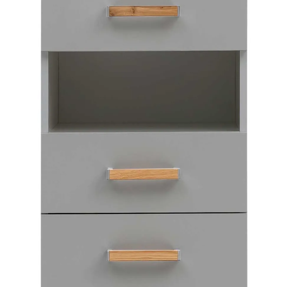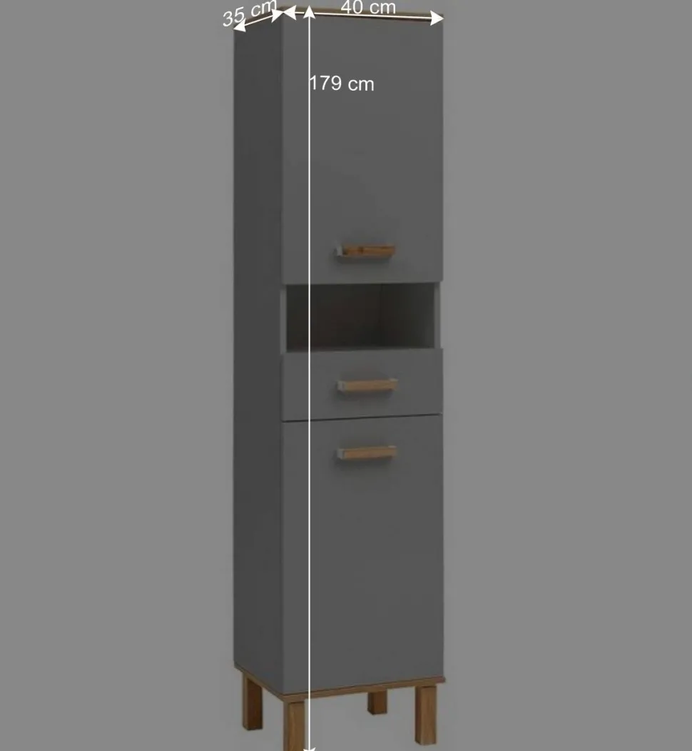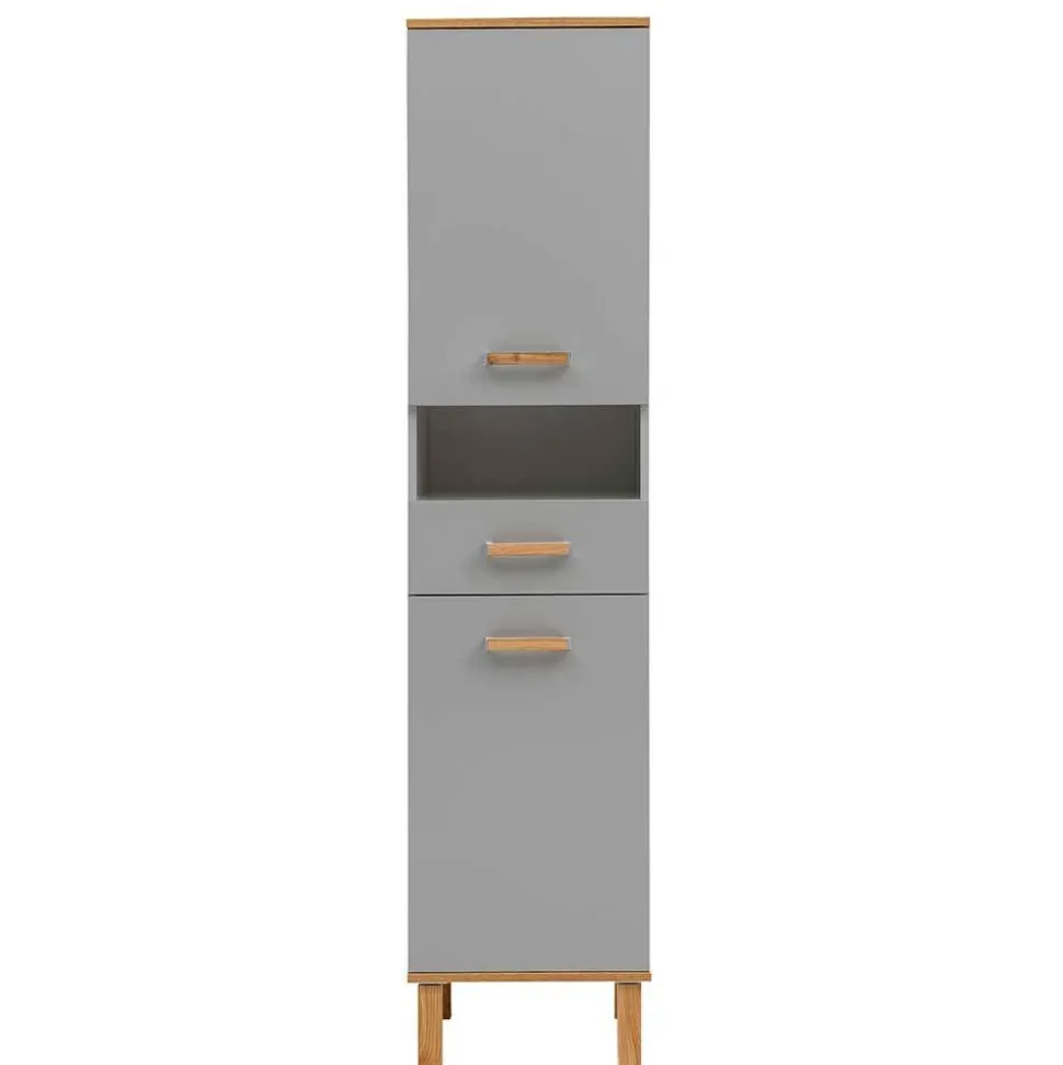 - Moderner Badhochschrank in Platingrau und Eichefarben