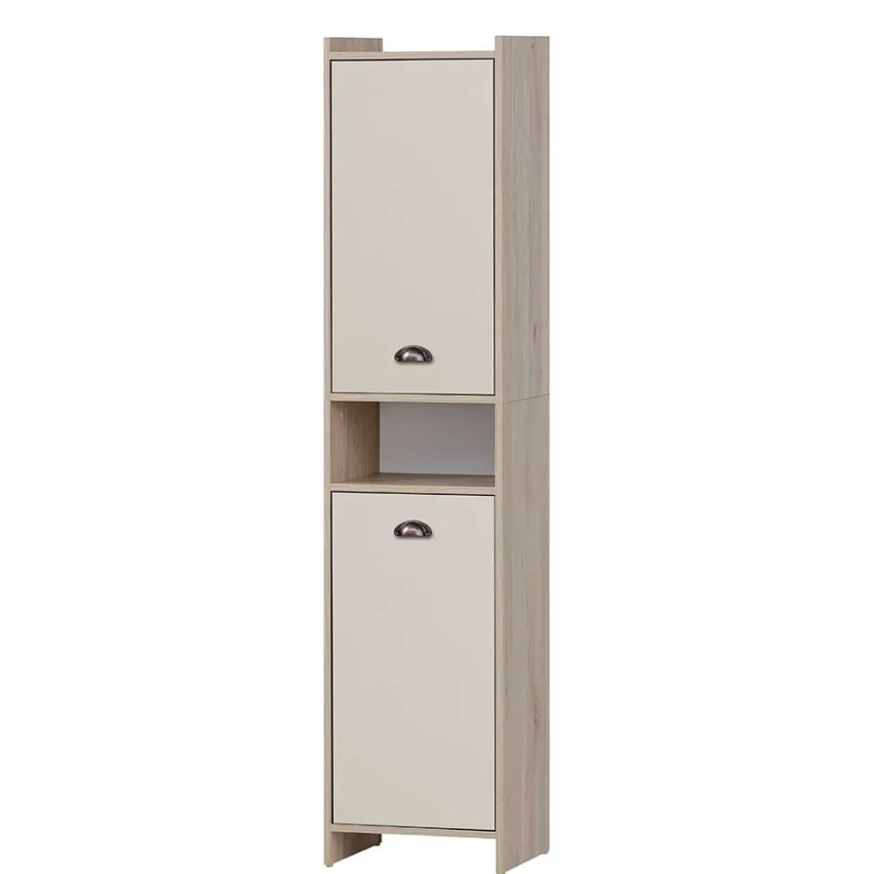 - Junger Bad Hochschrank in Cremeweiß und Eiche hell