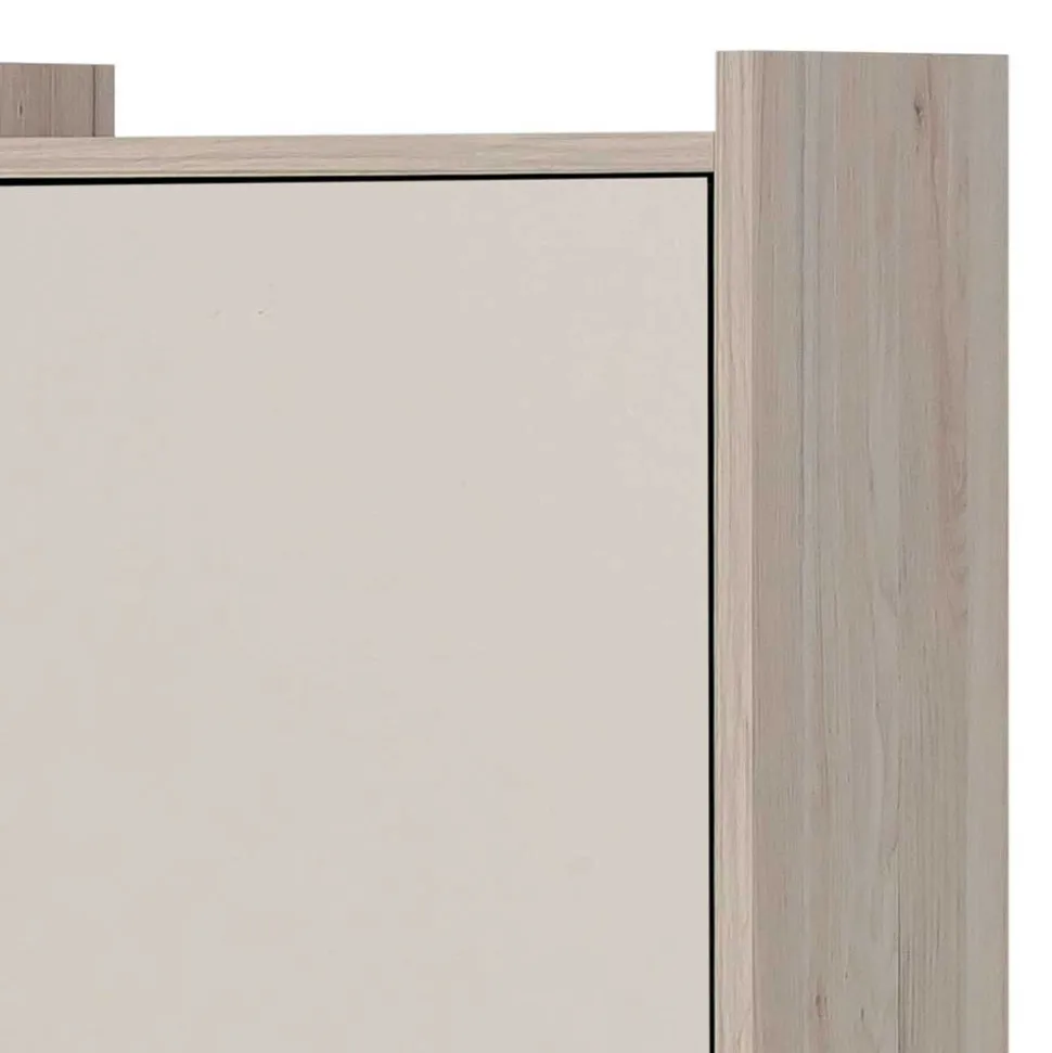 Inspiriert vom klaren, minimalistischen Stil Skandinaviens bringt der Hochschrank Togban eine wohltuende Ruhe in Ihren Raum. Das Skandi Design steht für helle Töne, natürliche Materialien und klare Linien – Elemente, die Wohnlichkeit und Geborgenheit ausstrahlen. Die Kombination aus edlem Cremeweiß und heller Eiche verleiht dem Möbel eine frische, luftige Ausstrahlung und fügt sich harmonisch in jede Badumgebung ein. Die feine Holzoptik der Oberfläche lässt Wärme entstehen, während die puristische Form für Ordnung und Struktur sorgt – perfekt für alle, die sich nach einem modernen, aber gemütlichen Wohnstil sehnen.
