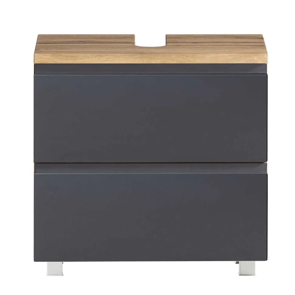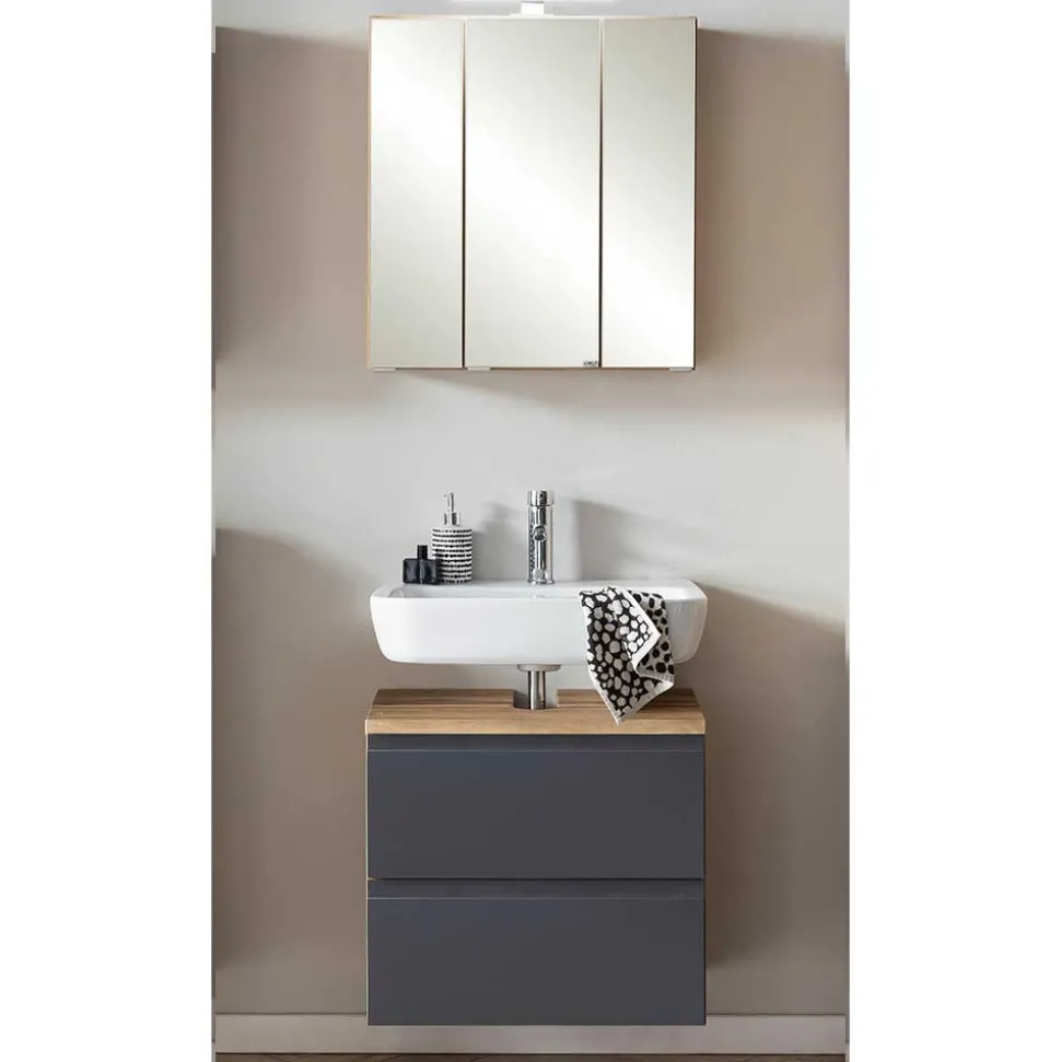 - Harmonische Badmöbel in Dunkelgrau und Wildeichefarben