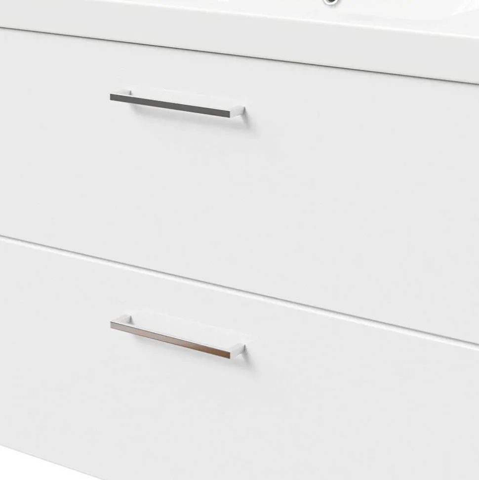 Das Badezimmer Waschplatz Set „Bahare“ besteht aus sorgfältig ausgewählten Materialien. Die Spanplatte in 1,6 cm Materialstärke bildet die Basis des Korpus und sorgt für Stabilität. Mit einer schützenden Melaminbeschichtung in Weiß versehen, ist das Möbelstück widerstandsfähig und pflegeleicht. Die Frontflächen sind tiefgezogen und präsentieren sich in einem glänzenden Hochglanz Weiß, während die robusten ABS-Kanten optimalen Schutz vor Stößen bieten. Der Spiegelschrank ist mit Spiegelglas ausgestattet, und die Bügelgriffe aus Chrom runden das edle Gesamtbild ab.