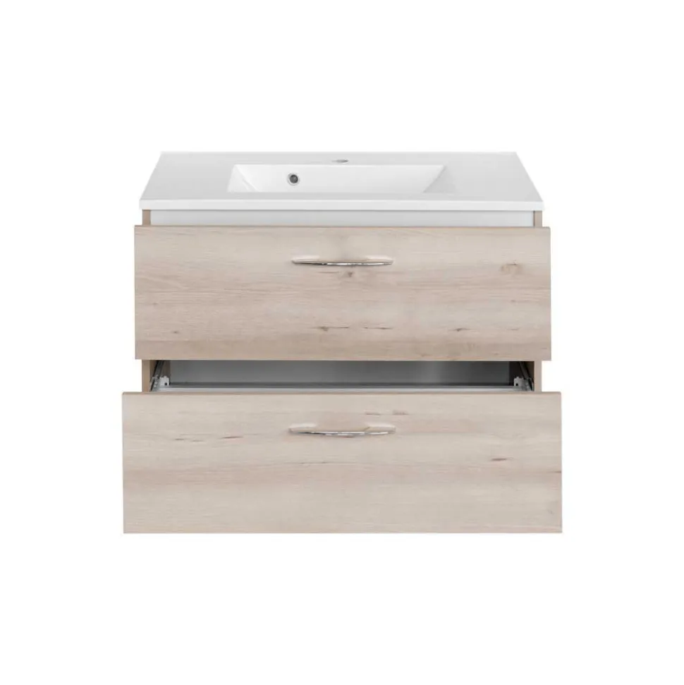 Ob wandhängend oder stehend – das Badmöbel Set „Mabeca“ lässt sich perfekt an Ihre Raumgegebenheiten anpassen. Die platzsparende Wandmontage sorgt für mehr Bodenfreiheit und eine moderne Optik. Alternativ sorgen vier silberfarbene Kunststofffüße (45x50x45 mm) für einen sicheren Stand, eine gute Luftzirkulation unter dem Möbel und erleichtern die Reinigung des Bodens.