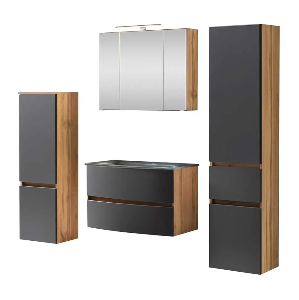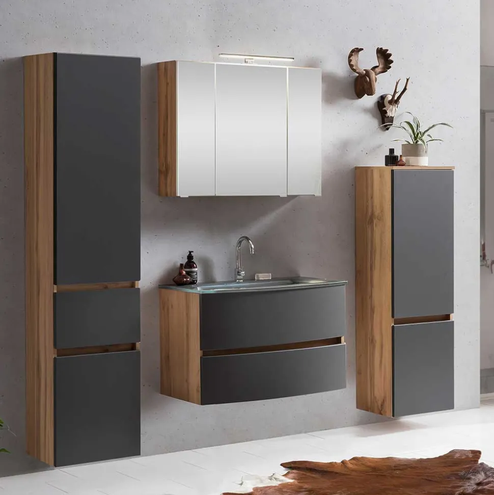 - Hervorragende Badmöbel in Grau und Wildeichefarben
