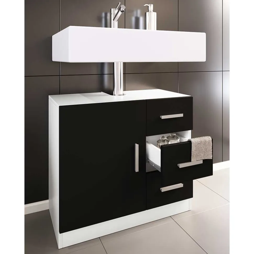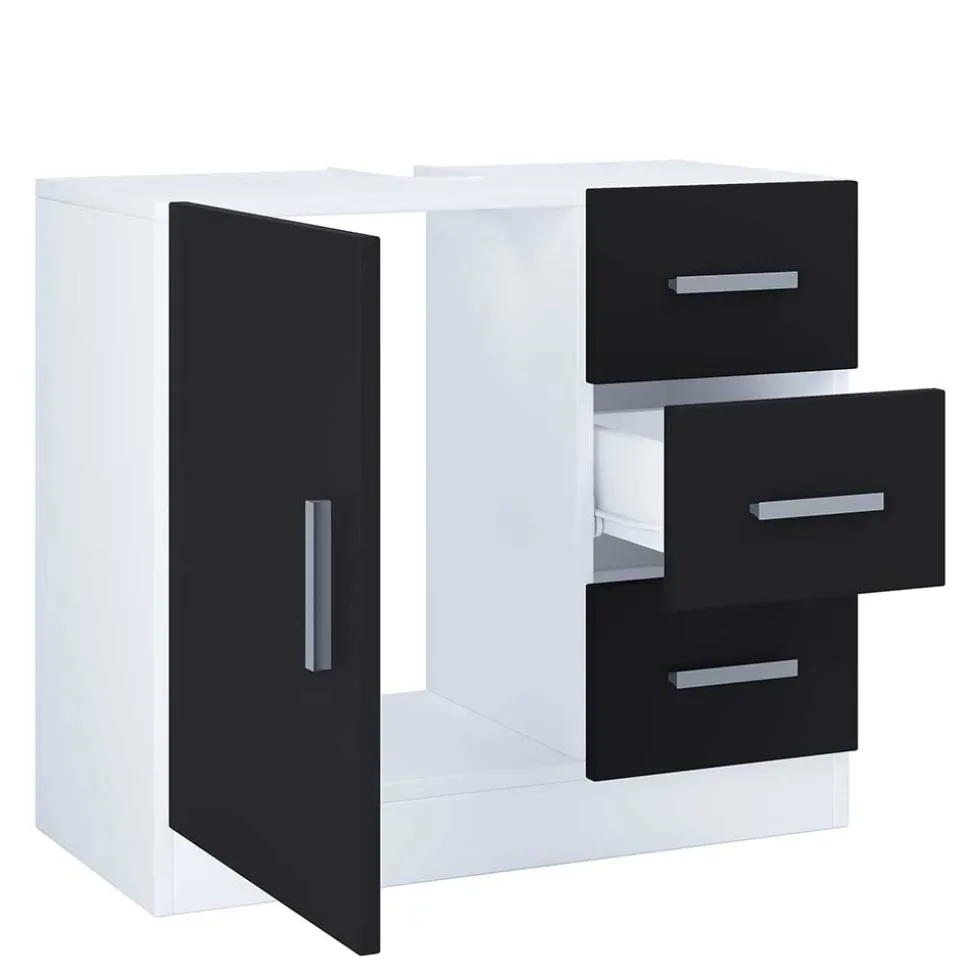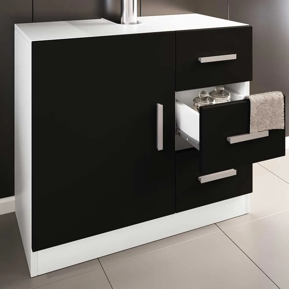 - Geräumiger Unterbeckenschrank in Weiß und Schwarz