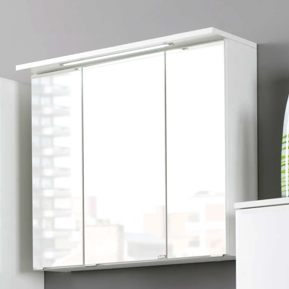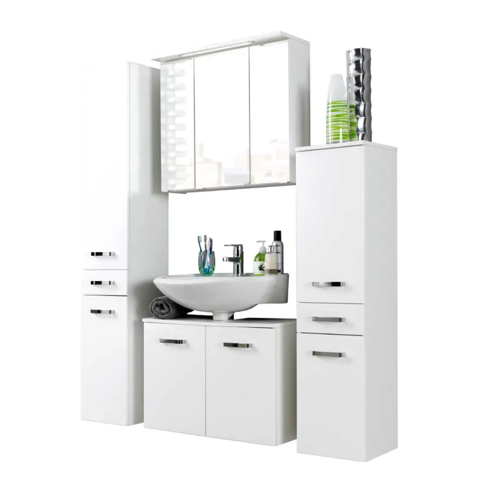 - Vorteilsset bestehend aus 3-D-Spiegelschrank, Unterbeckenschrank, Midischrank und Hochschrank