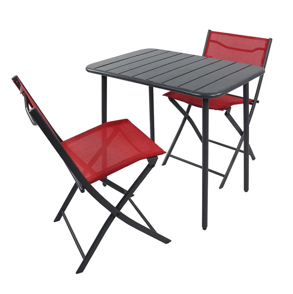 - Modernes Design in Rot und Schwarz macht dieses Bistro-Set zu einem Hingucker