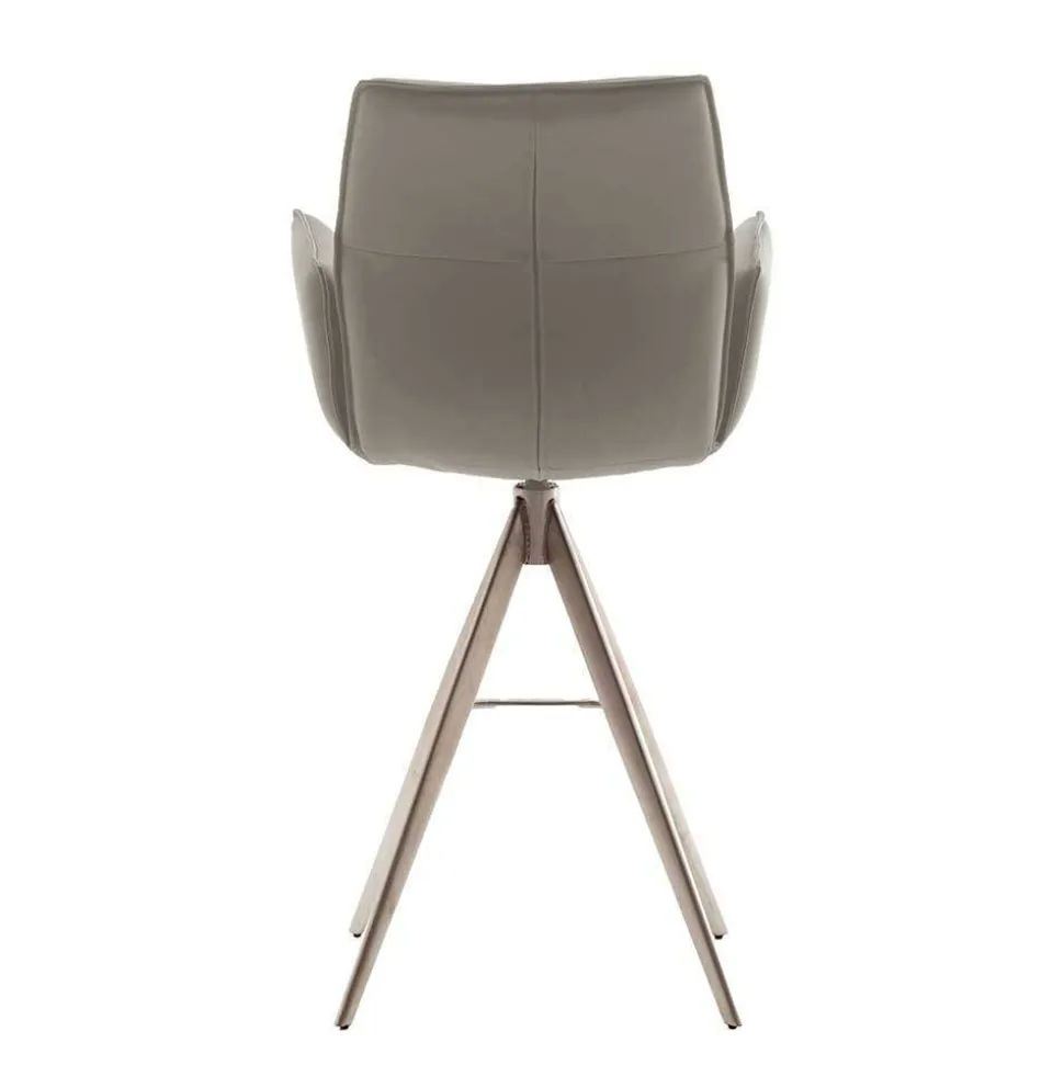 Die Barstühle „Damien“ bieten nicht nur Komfort, sondern auch praktische Funktionen. Die ergonomische, leicht nach hinten geneigte Rückenlehne mit einer Höhe von 36 cm sorgt für eine optimale Unterstützung. Der umlaufende Keder und die präzise Steppung unterstreichen das hochwertige Design. Die bequemen Armlehnen bieten zusätzlichen Komfort, während die Fußablage eine entspannte Sitzposition garantiert. Besonders praktisch ist die Drehfunktion – die Stühle lassen sich um 360 Grad drehen und bieten eine einfache Nivellierung für maximalen Komfort.