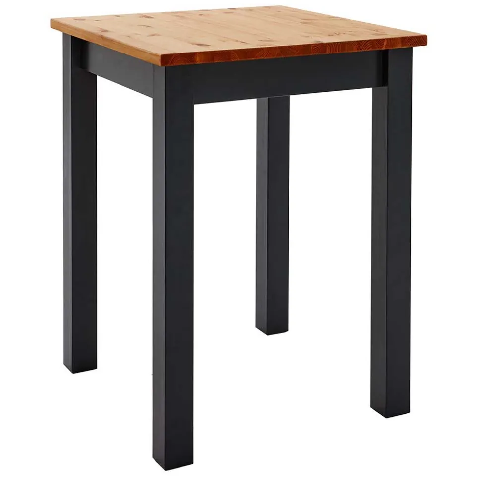 Die Bar Tischgruppe „San Bruma“ wird aus hochwertigem Kiefer Massivholz gefertigt. Die Oberflächen sind sorgfältig verarbeitet: Ein Teil in Schwarz gebeizt und lackiert, lässt die natürliche Maserung durchscheinen, während der andere Teil in einer warmen Laugenfarbe gebeizt und geölt ist. Dies schafft einen reizvoll-gemütlichen Look, der sich harmonisch in Ihr Wohnambiente einfügt.