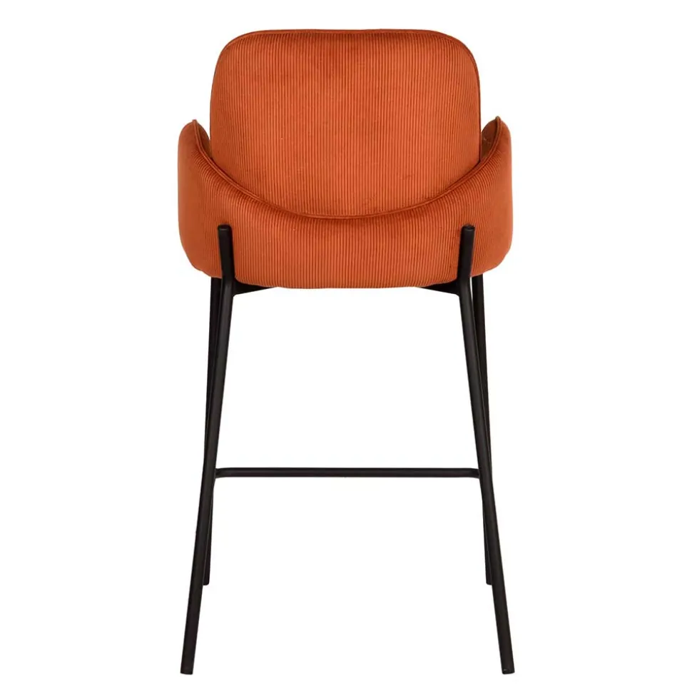 Der robuste Cordbezug aus 100 % Polyester in einer warmen Rostfarbe unterstreicht den charmanten Retro-Look und sorgt für eine behagliche Haptik. Cord ist nicht nur unglaublich strapazierfähig, sondern auch pflegeleicht und unempfindlich gegenüber täglichen Gebrauchsspuren – ideal für einen Barhocker, der regelmäßig genutzt wird. Der Stoff verleiht dem „Benede“ eine interessante Textur und lässt ihn modern und zugleich zeitlos wirken.
