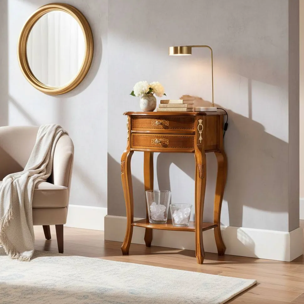 Dieses prachtvolle Möbelstück gehört zur eleganten Serie „Natale“. Entdecken Sie weitere Möbelstücke dieser Serie, um Ihr Zuhause in ein harmonisches und stilvolles Gesamtbild zu verwandeln. Der Beistelltisch „Natale“ – eine Investition in Qualität, Stil und Geschichte.