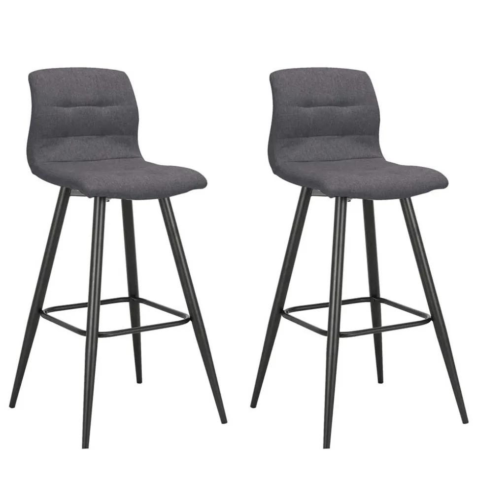 Die Barstühle sind aus robustem Webstoff und pulverbeschichtetem Metall gefertigt. Der Webstoffbezug aus 100 % Polyester überzeugt nicht nur durch seine Strapazierfähigkeit, sondern auch durch attraktive Ziersteppungen, die dem Möbelstück eine besondere Note verleihen. Das stabile Gestell sorgt für eine sichere Nutzung und ist mit einer bequemen Fußablage ausgestattet.