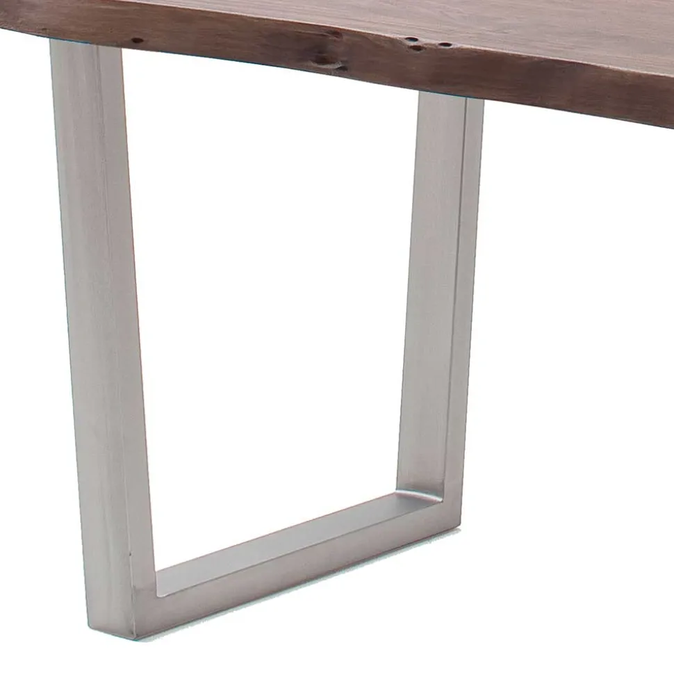 Der Baumkanten-Tisch „Bennetto“ vereint rustikale Gemütlichkeit mit modernem Design und wird so zum Herzstück Ihres Essbereichs. Mit seiner warmen Walnuss-Braun-Färbung und den edelstahlfarbenen Akzenten fügt sich dieser Tisch harmonisch in jede Einrichtung ein und schafft eine einladende Atmosphäre.