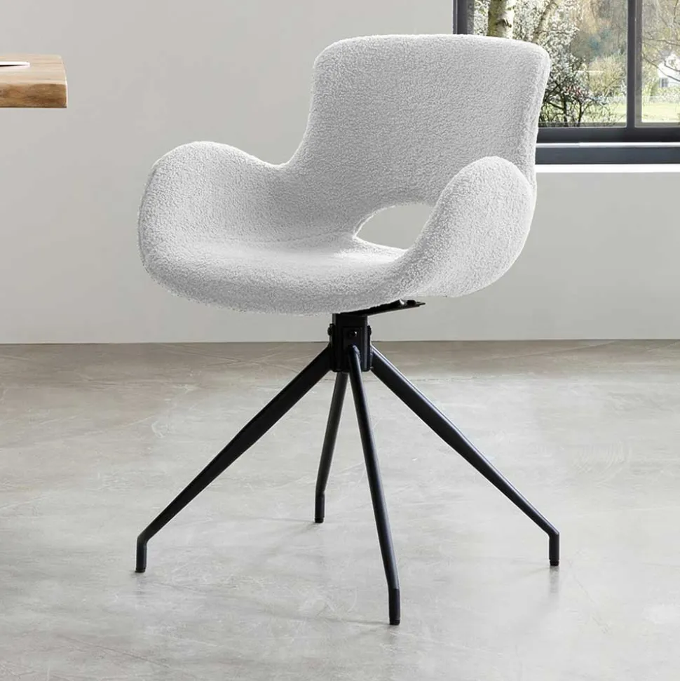 Ein Sitzgefühl wie in einem hochwertigen Designerstuhl – genau das erwartet dich bei jedem der vier „Bryan“-Stühle. Die extravagante Schalenform mit stilvollem Ausschnitt schmiegt sich angenehm an den Körper und bietet mit ihrer großzügigen Schaumstoffpolsterung besten Komfort, auch bei langen Abenden. Ein echtes Highlight: Die Sitzschalen sind um 180 Grad drehbar, was das Aufstehen oder Zuwenden zur Tischrunde besonders bequem macht.