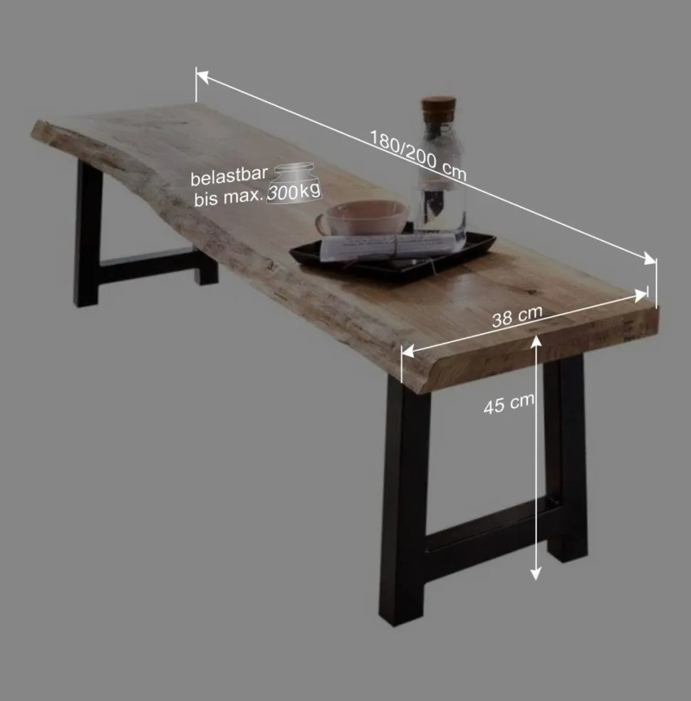 Mit einer Höhe von 45 cm und einer Tiefe von 38 cm, wählbar in den Längen 180 cm oder 200 cm, passt sich die „Morienta“ perfekt an Ihre individuellen Bedürfnisse an. Die komfortable Sitzhöhe und die maximale Belastbarkeit von 300 kg garantieren, dass die Bank sowohl im alltäglichen Gebrauch als auch bei besonderen Anlässen überzeugt. Das Vierfuß-Gestell in A-Form sorgt nicht nur für Stabilität, sondern auch für eine klare, moderne Linienführung.