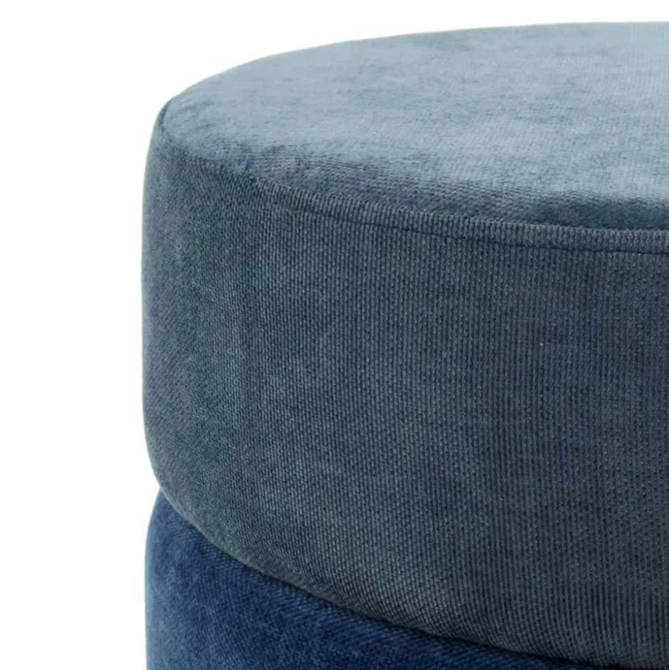 - Lässiger Hocker in Blautönen und Goldfarben