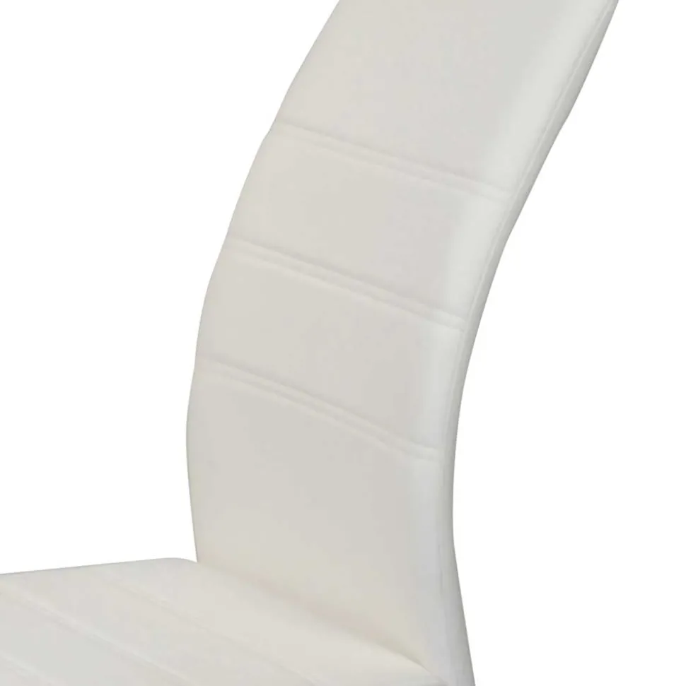 Weiße Sitzflächen aus 100 % Polyurethan – ein besonders langlebiges, reißfestes und zugleich geschmeidiges Kunstleder – machen die Stühle zu einem echten Komfort-Highlight. Polyurethan überzeugt zudem durch seine Unempfindlichkeit gegenüber Flecken und seine einfache Reinigung – ideal für Haushalte mit Kindern oder häufigem Besuch. Elegante Ziernähte setzen stilvolle Akzente und unterstreichen die handwerklich hochwertige Verarbeitung.