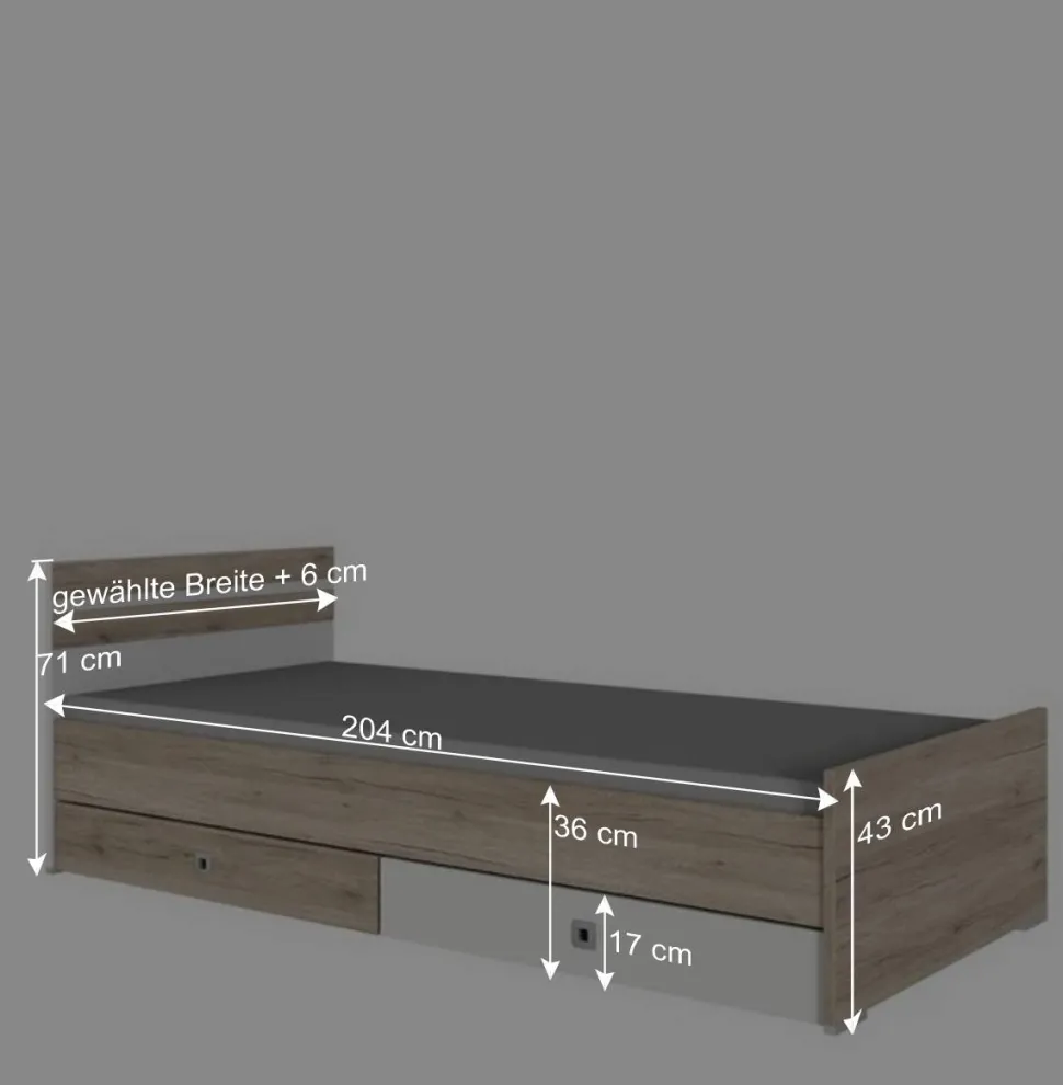Optional erhältliche Bettschubkästen bieten zusätzlichen Stauraum unter dem Bett, ideal, um Bettwäsche, Kissen oder saisonale Kleidung leicht zugänglich und ordentlich verstaut zu halten. Jeder Schubkasten bietet mit seinen Maßen von etwa 100x16x60 cm ausreichend Platz für Ihre Aufbewahrungsbedürfnisse.