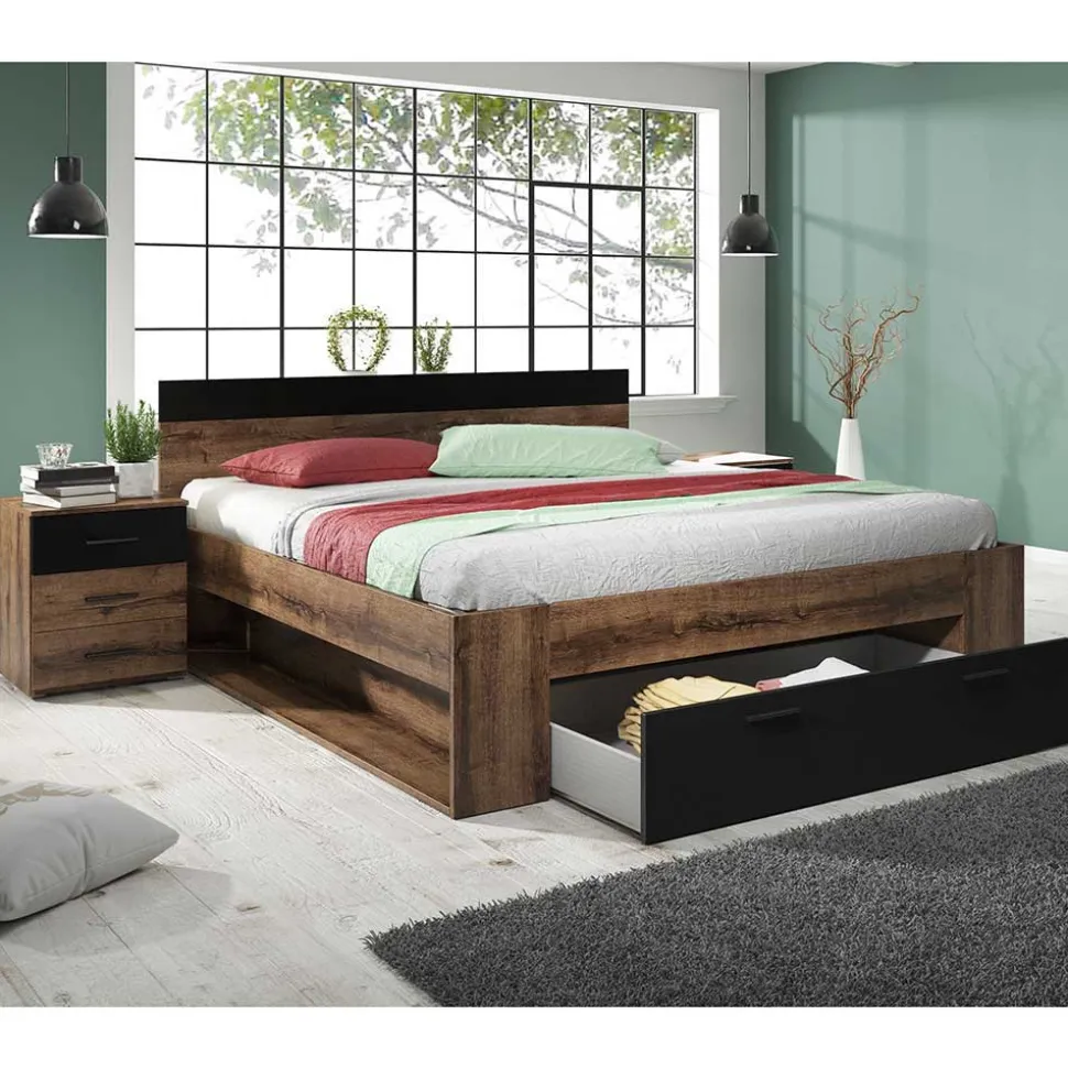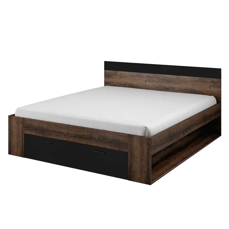 - Klasse Bett in Eiche dunkel und Schwarz