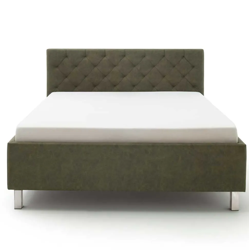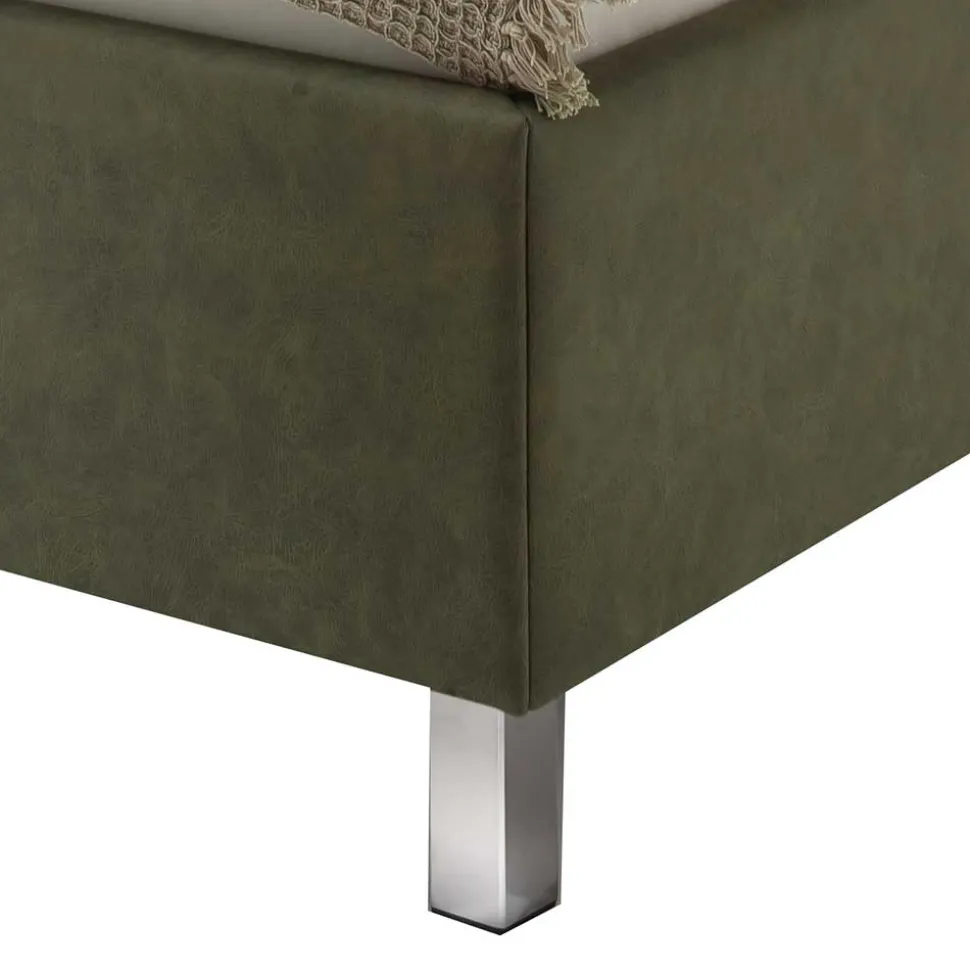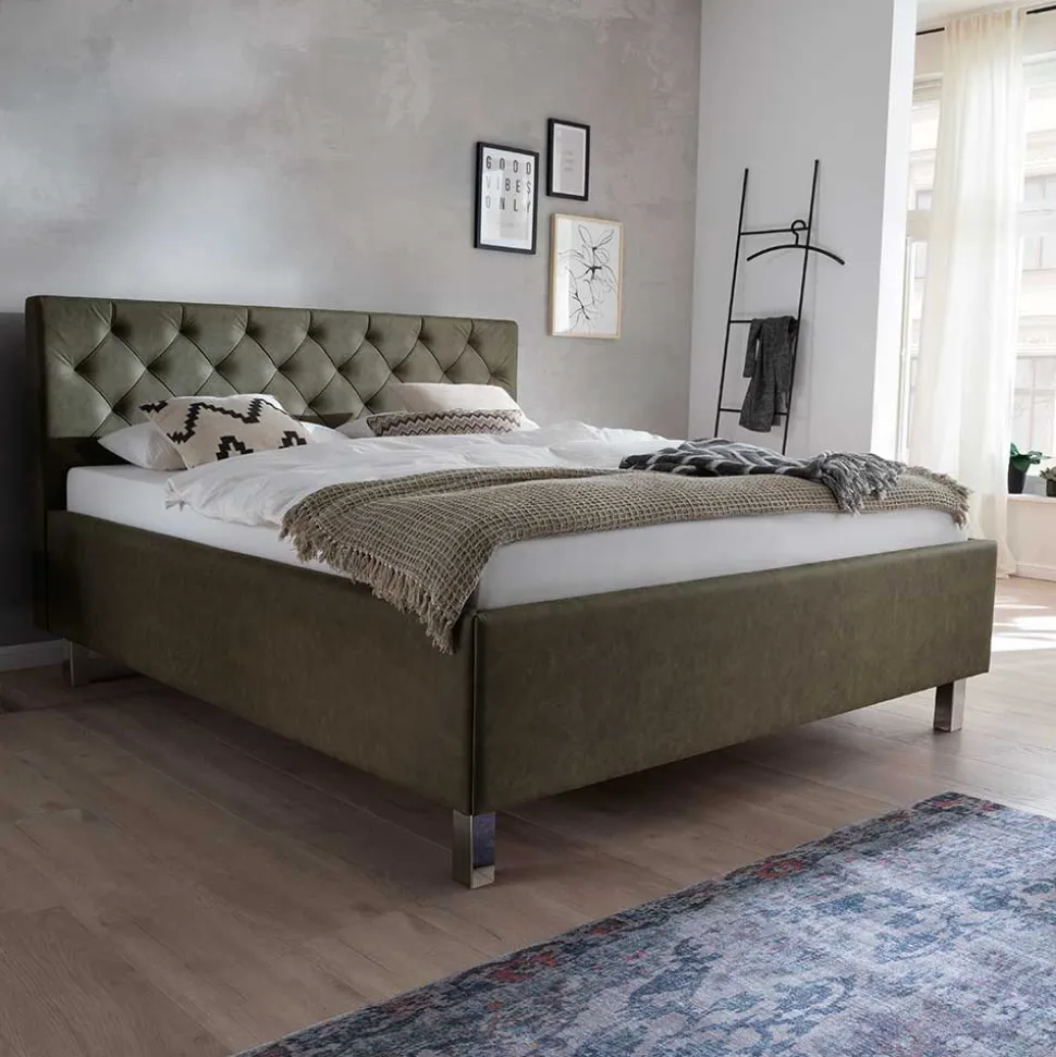 - Klasse Polsterbett in Olivgrün und Chromfarben