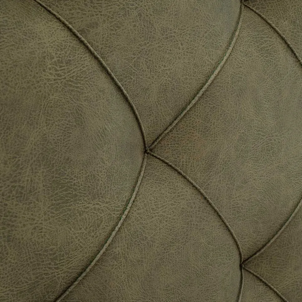 Das Kopfteil und die Bettrahmung sind mit einem oliv-grünen Microfaserbezug aus 100 % Polyester bezogen. Dieser Stoff zeichnet sich durch seine samtige Oberfläche aus, die zugleich robust und pflegeleicht ist. Die Rückseite des Kopfteils ist mit einem schwarzen Webstoff aus 100 % Polypropylen versehen, welcher nicht nur ästhetisch ansprechend ist, sondern auch eine hohe Strapazierfähigkeit mitbringt. Dank der unempfindlichen Oberflächen bleibt das Bett lange makellos und behält seine elegante Ausstrahlung.