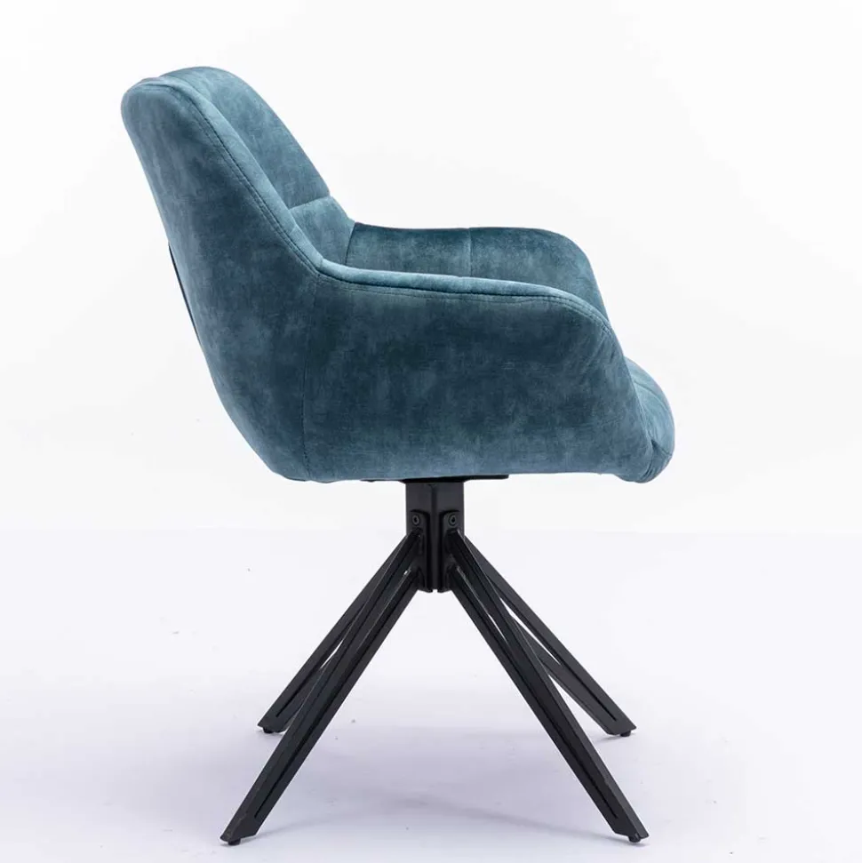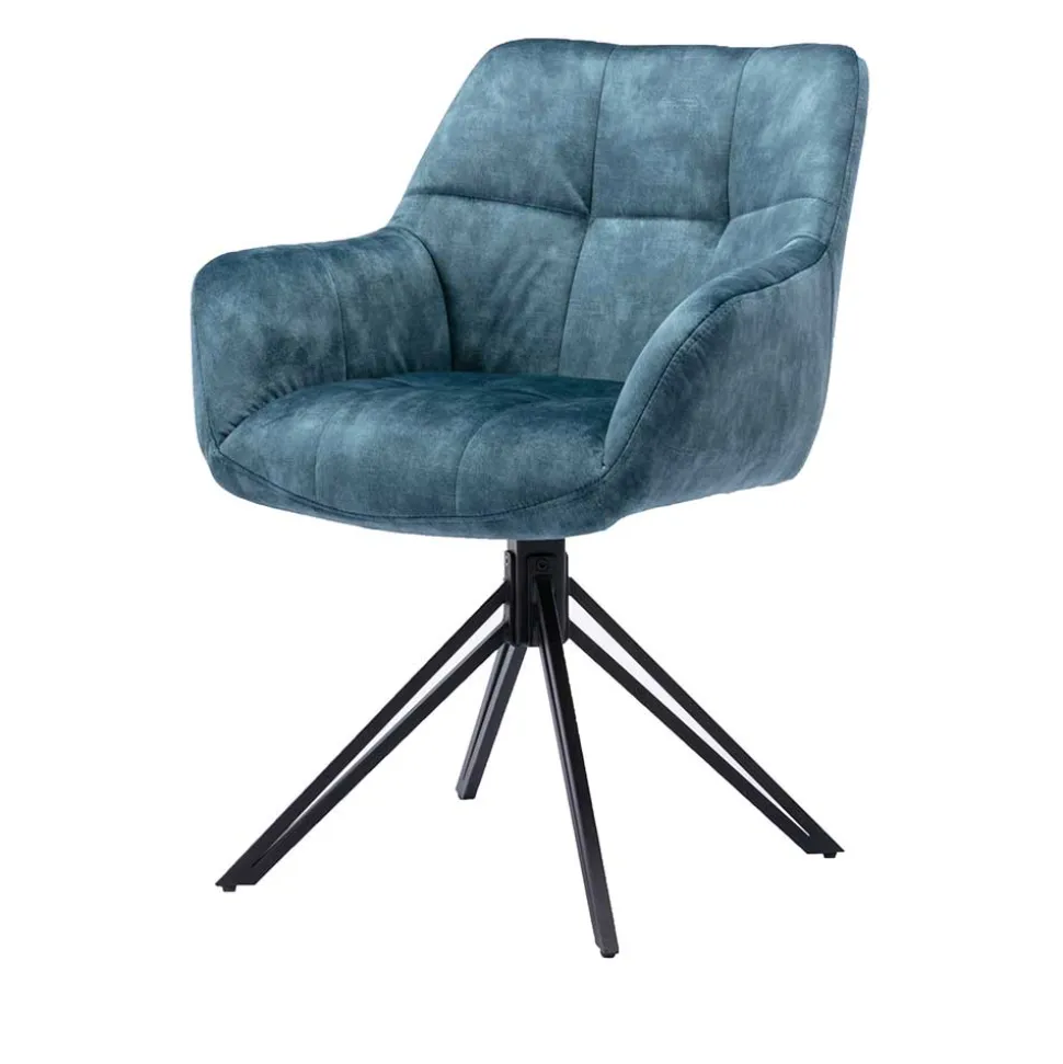 Eingehüllt in weichen, blauen Veloursbezug, besticht der „Paleara“ durch seine Vintage-Optik, die Ihrem Raum eine edle Ausstrahlung verleiht. Velours, bekannt für seine Langlebigkeit und leicht zu pflegende Oberfläche, bietet nicht nur eine luxuriöse Haptik, sondern ist auch strapazierfähig genug, um den Anforderungen des täglichen Gebrauchs standzuhalten. Die 100 % Polyesterzusammensetzung garantiert dabei eine beeindruckende Widerstandsfähigkeit gegen Abnutzung, wodurch Ihr Stuhl auch nach Jahren des Gebrauchs wie neu aussieht.