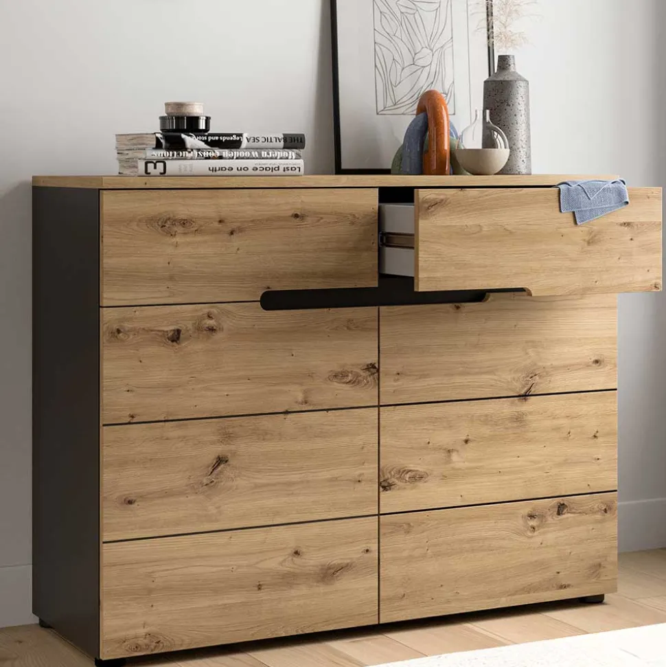 - Kompakte Kommode in Wildeichefarben und Grau