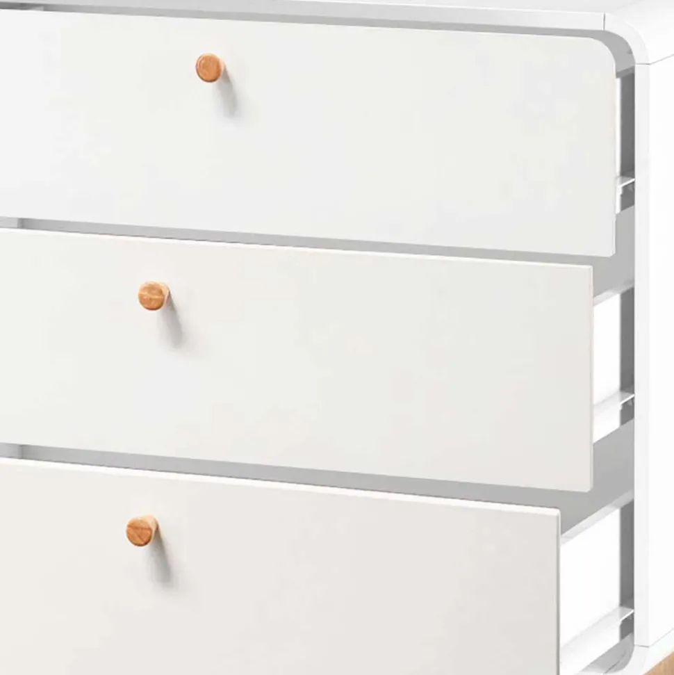 Die Kommode besteht aus einer Kombination aus MDF und Spanplatte, zwei bewährten Materialien, die für Stabilität und eine lange Lebensdauer sorgen. MDF ist besonders formstabil und widerstandsfähig, während die Spanplatte das Möbelstück angenehm leicht macht, ohne an Robustheit einzubüßen. Dank der pflegeleichten, in Weiß folierten Oberflächen bleibt die Kommode auch nach Jahren noch strahlend schön. Ein kurzes Abwischen mit einem feuchten Tuch genügt, um Staub und leichte Verschmutzungen zu entfernen – ideal für einen Haushalt, in dem Sauberkeit und Komfort Hand in Hand gehen.