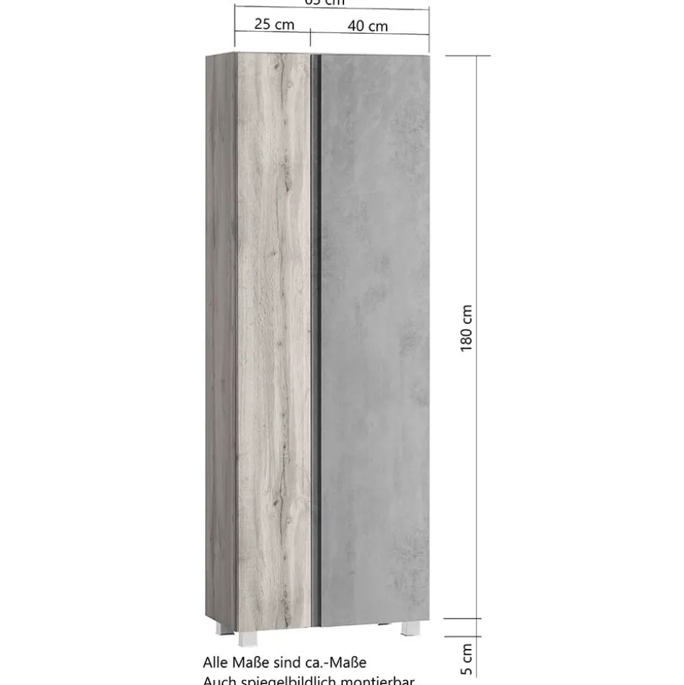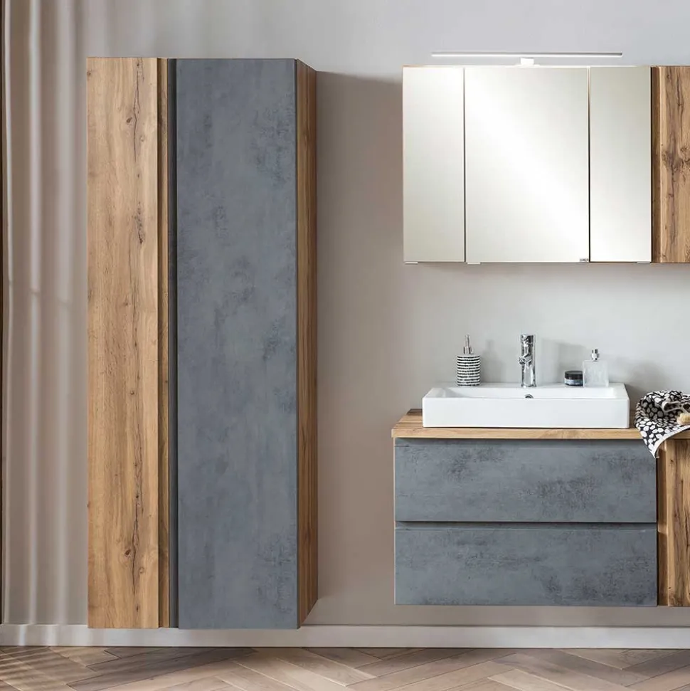 - Geräumiger Bad Hochschrank in Betongrau und Wildeichefarben
