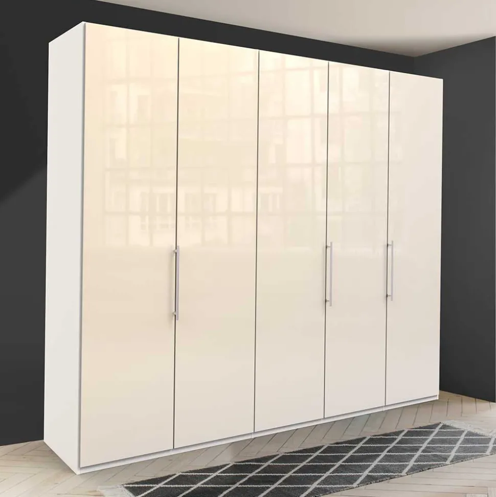 - Niveauvoller Kleiderschrank in Cremefarben und Weiß