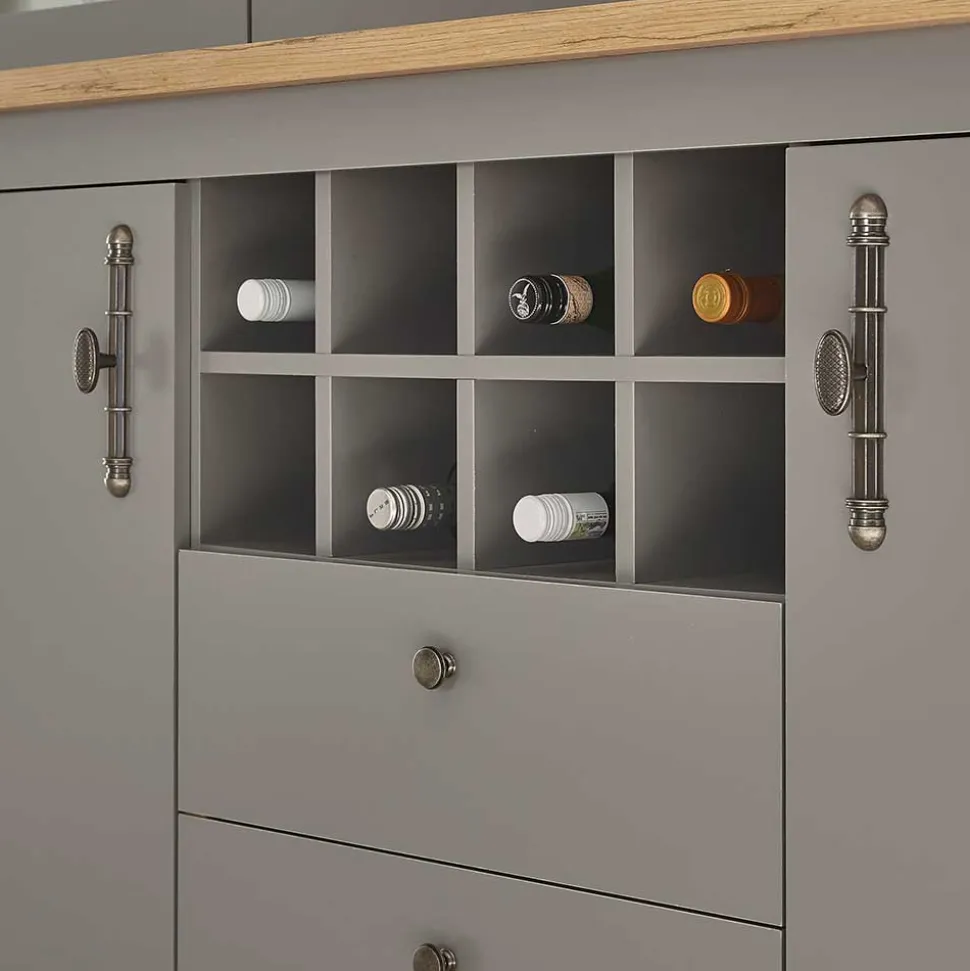 - Imposanter Buffet Schrank in Lichtgrau und Eichefarben