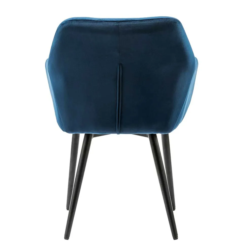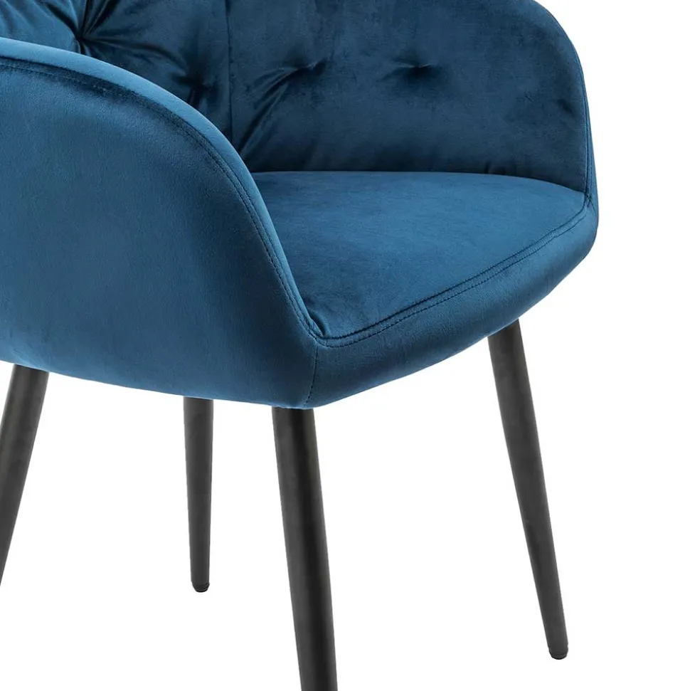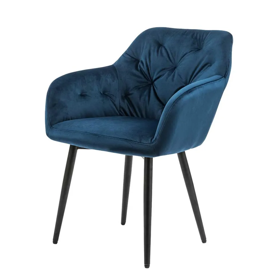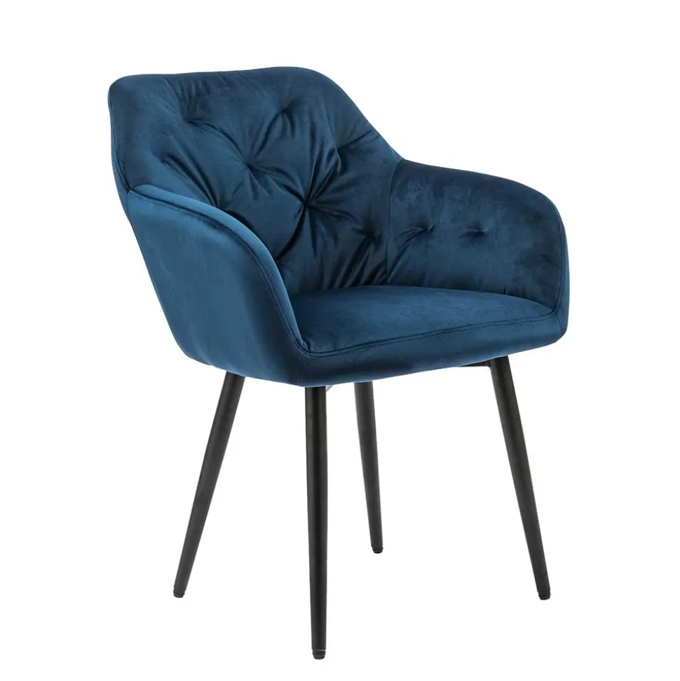 Der Retrostil, bekannt für seine nostalgische Anmutung, die an vergangene Jahrzehnte erinnert, wird in „Coridar“ neu interpretiert. Mit einem Fuß in der Vergangenheit und dem anderen fest in der Gegenwart, bietet dieser Armlehnstuhl eine perfekte Balance zwischen altmodischem Charme und zeitgenössischem Design. Der elegante Samtbezug in tiefem Blau verleiht jedem Raum eine luxuriöse Ausstrahlung, während das robuste Vierfußgestell aus schwarz pulverbeschichtetem Metall die Zeitlosigkeit und die Stärke des Stuhls unterstreicht.