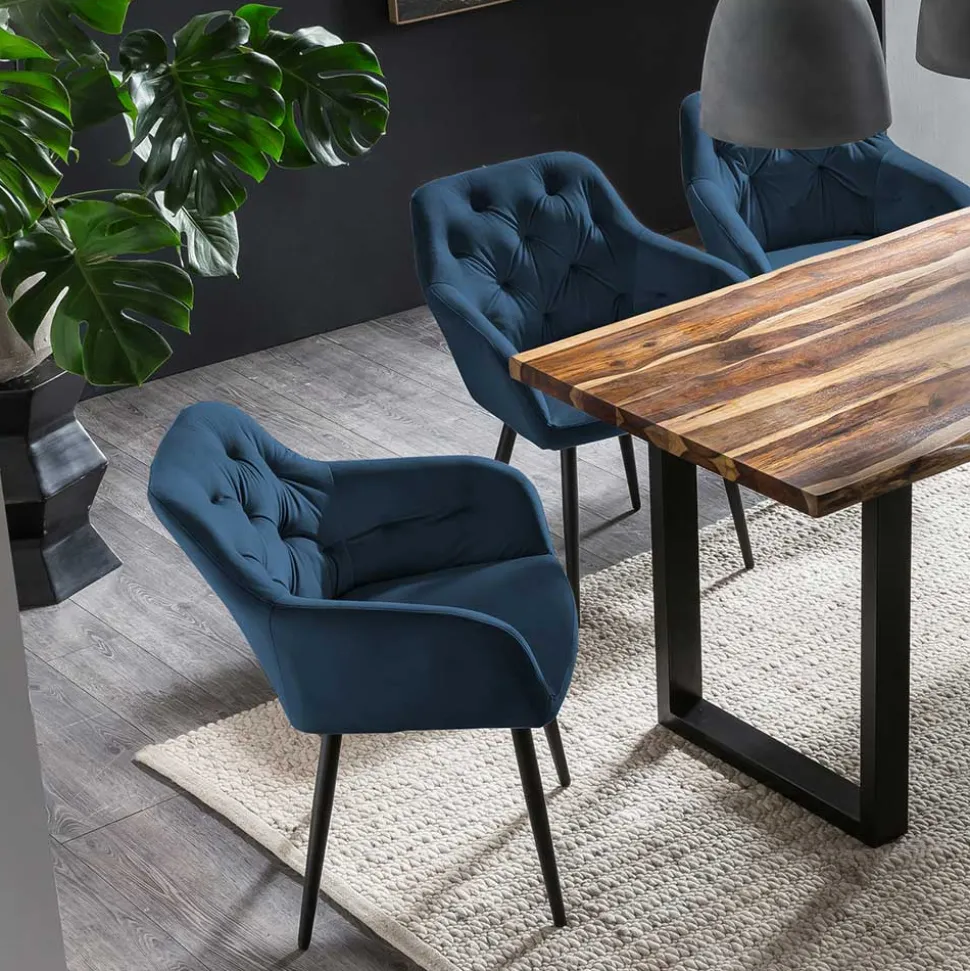 „Coridar“ ist nicht nur ein visuelles Highlight; er ist auch ein Meisterwerk der Ergonomie. Die schaumstoffgepolsterte Rücken- und Sitzfläche, zusammen mit der formschönen, dekorativ gesteppten Rückenlehne mit Zierknöpfen, bietet Ihnen und Ihren Gästen einen Sitzkomfort, der seinesgleichen sucht. Die leicht schräg gestellten Armlehnen und die Komfortsitzhöhe sorgen für eine natürliche und entspannte Sitzhaltung, die auch nach Stunden am Esstisch keinen Wunsch nach Bequemlichkeit offenlässt.
