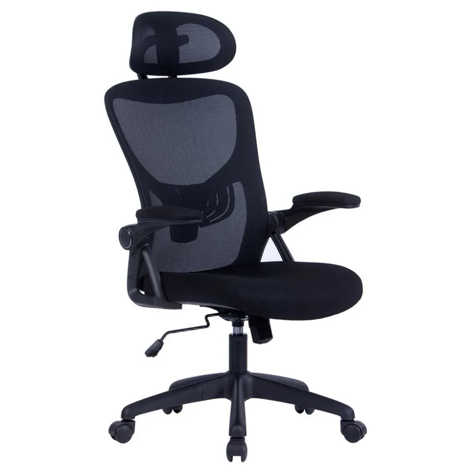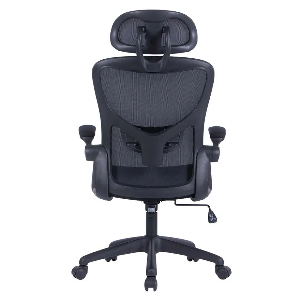 Die stufenlos verstellbare Sitzhöhe von 43-51 cm ermöglicht eine ergonomische Anpassung an Ihren Arbeitsplatz. Die hochklappbaren Armlehnen mit einer Höhe von 20 cm bieten Flexibilität, während die Lordoseunterstützung und die neigbare Kopfstütze für optimale Unterstützung sorgen. Die Wippmechanik mit Härtegradeinstellung erlaubt eine individuelle Anpassung des Stuhls an Ihre Bedürfnisse.