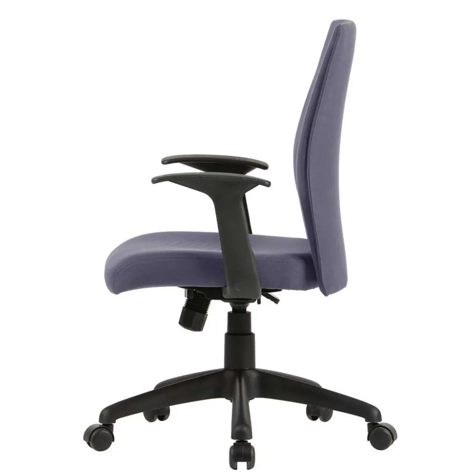 Der Bezug aus strapazierfähigem Webstoff, bestehend aus 100 % Polyester, verleiht dem Stuhl eine angenehme Haptik und sorgt für eine pflegeleichte Oberfläche. Die Kunststoff-Armlehnen bieten nicht nur Bequemlichkeit, sondern auch eine moderne Optik. Das stabile Kunststoff-Sterngestell in Kombination mit gebremsten Sicherheitsdoppelrollen aus Kunststoff gewährleistet Mobilität und Standfestigkeit zugleich.