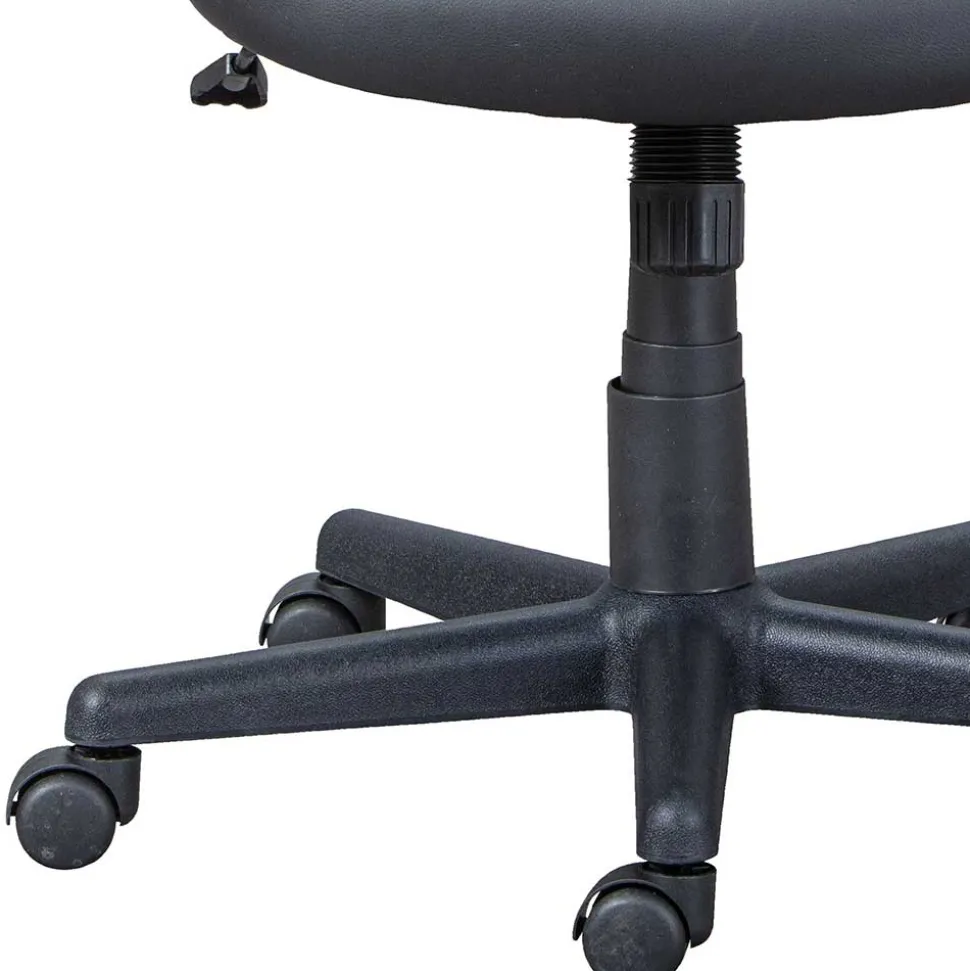 Stabilität und Sicherheit sind durch das robuste Kunststoff-Sterngestell garantiert. Die solide Konstruktion bietet eine zuverlässige Basis und sorgt für einen sicheren Stand. Gebremste Sicherheitsrollen aus Kunststoff ermöglichen eine kontrollierte Bewegung, ohne dass der Stuhl ungewollt wegrollt. Dadurch eignet sich der Stuhl sowohl für Hartböden als auch für Teppichböden.