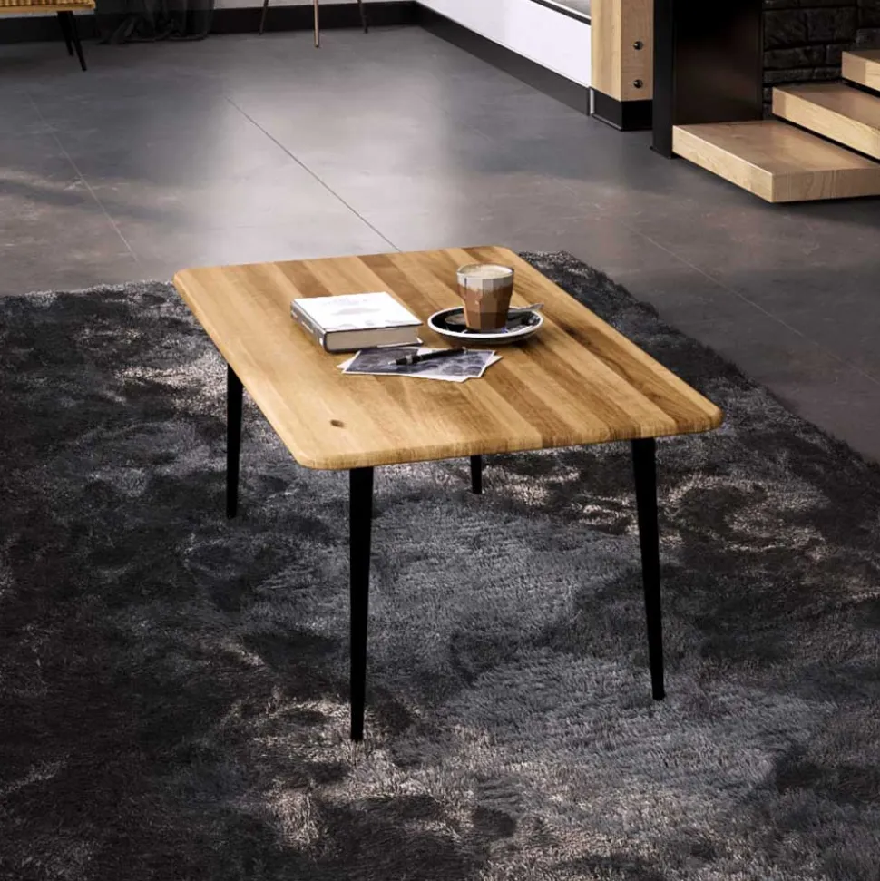 Unsere Casarius Couchtische sind in zwei Varianten erhältlich: Einer rechteckigen Variante mit einer Breite von 110 cm und einer Tiefe von 60 cm und einer quadratischen Variante mit 90 cm Breite und Tiefe. Mit einer Höhe von 48 cm sind beide Modelle perfekt auf Sitzhöhe abgestimmt. Die Tischplatte, mit einer Stärke von ca. 3 cm, besteht aus durchgehenden Lamellen – das heißt, dass längs nebeneinander verleimte, durchgehende Holzstreifen eine durchgehend gemaserte Oberfläche bilden. Abgerundete Tischkanten runden das Gesamtbild ab und erhöhen die Sicherheit.
