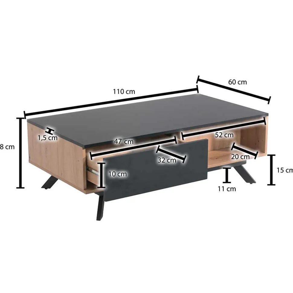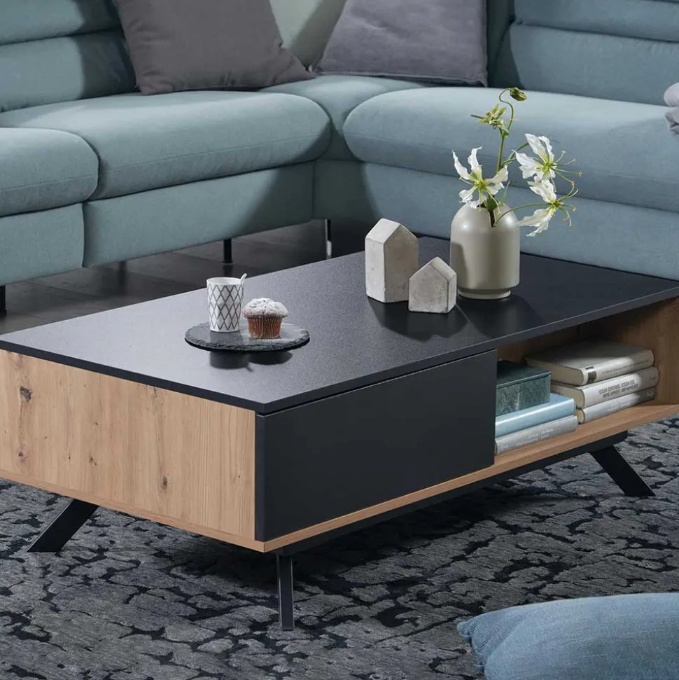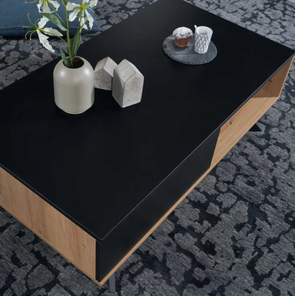 - Aparter Couchtisch in Schwarz und Eichefarben