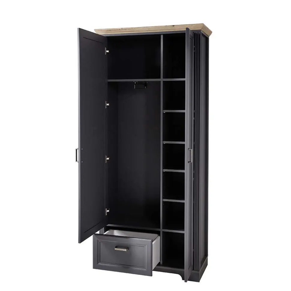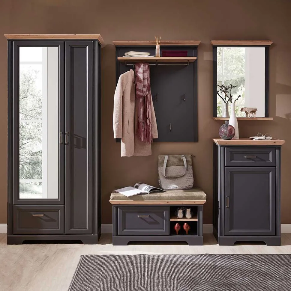 Gestalten Sie Ihren Eingangsbereich nicht nur funktional, sondern auch optisch ansprechend mit unserer Garderobenkombination „Thumbs“. Dieses Ensemble im beliebten Landhausstil verleiht jedem Raum eine warme und einladende Atmosphäre, die sowohl traditionelle Elemente als auch moderne Akzente perfekt vereint. Der Landhausstil zeichnet sich durch seine rustikale Eleganz aus, wobei natürliche Materialien und sanfte Farben im Vordergrund stehen. Diese Kollektion macht aus Ihrem Eingangsbereich einen Ort, der Gastlichkeit und Geschmack ausstrahlt.