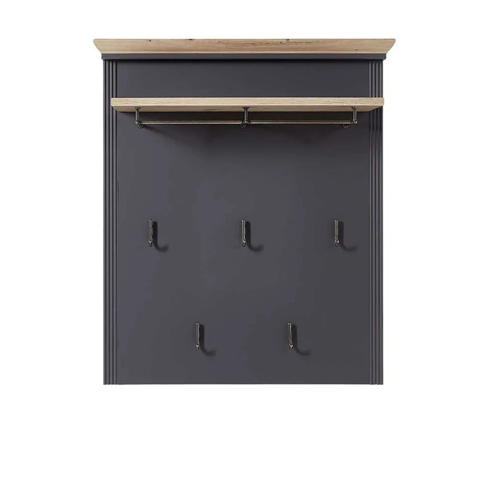 Die Möbel stehen stabil auf teilgeöffneten Sockelgestellen, die nicht nur für einen festen Stand sorgen, sondern auch das Gesamtbild aufwerten. Garderobenpaneel und Spiegel sind zur platzsparenden Wandmontage gedacht, wodurch Ihr Eingangsbereich großzügiger erscheint. Wir empfehlen die Befestigung des Garderobenschrankes an der Wand, um die Sicherheit zu erhöhen.