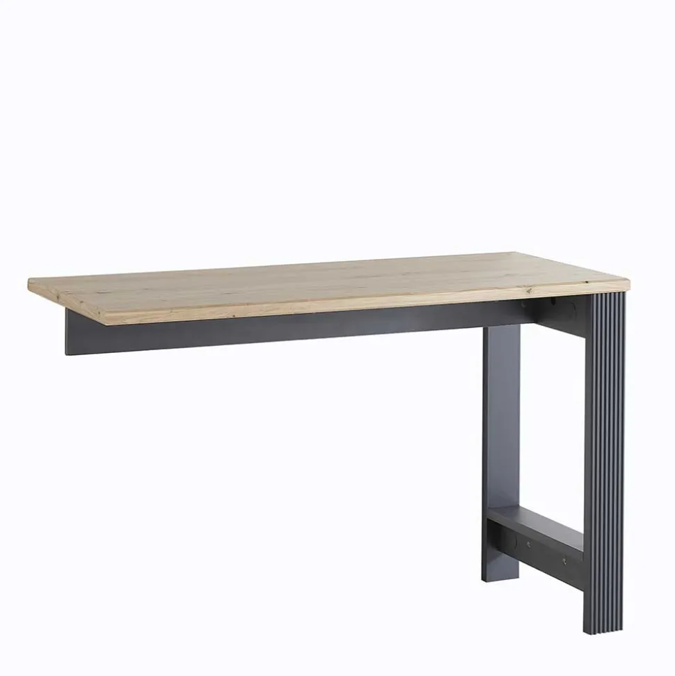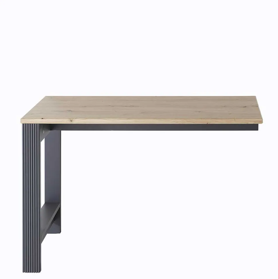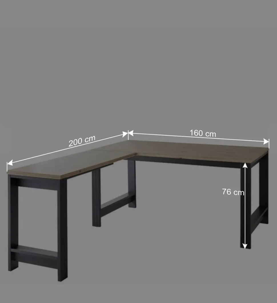 - Geräumiger Eckschreibtisch in Dunkelgrau und Eichefarben