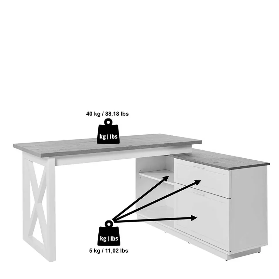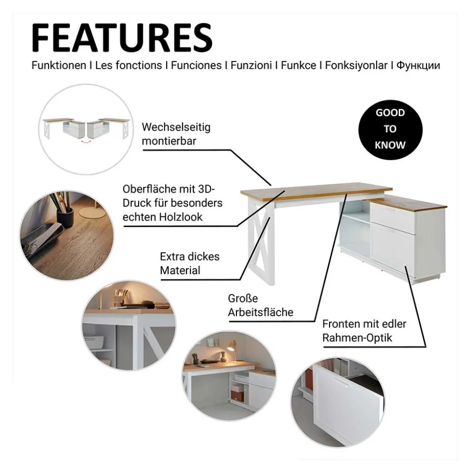 - Attraktiver Eckschreibtisch in Weiß und Eichefarben