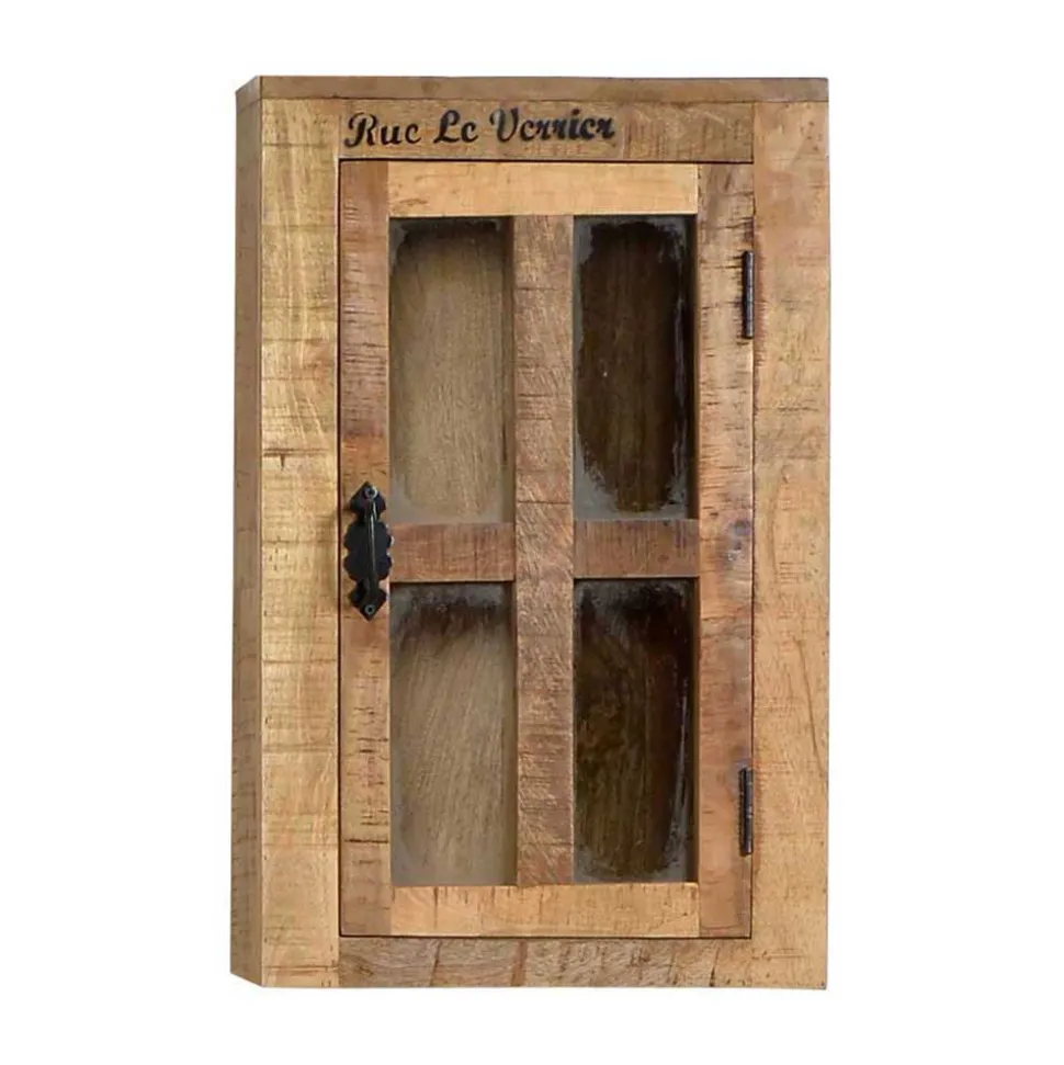 - Eine Tür mit Glaseinsatz, dahinter ein Einlegeboden