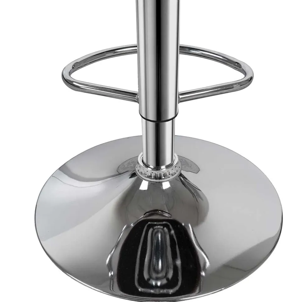Mit einer variablen Sitzhöhe von 63 bis 84 cm lässt sich der Barhocker „Devi“ individuell anpassen – perfekt für jede Thekenhöhe. Die extra hohe Sitzhöhe von rund 81 cm sorgt für ein besonders aufrechtes, bequemes Sitzgefühl. Dank der 360-Grad-Drehfunktion bleibt man stets flexibel, ohne aufzustehen – ideal für gesellige Abende, bei denen man sich gerne im Gespräch zuwendet. Das standsichere, verchromte Tellergestell mit integrierter Fußstütze bietet sicheren Halt und ein glänzendes Finish, das den modernen Retro-Look perfekt abrundet.