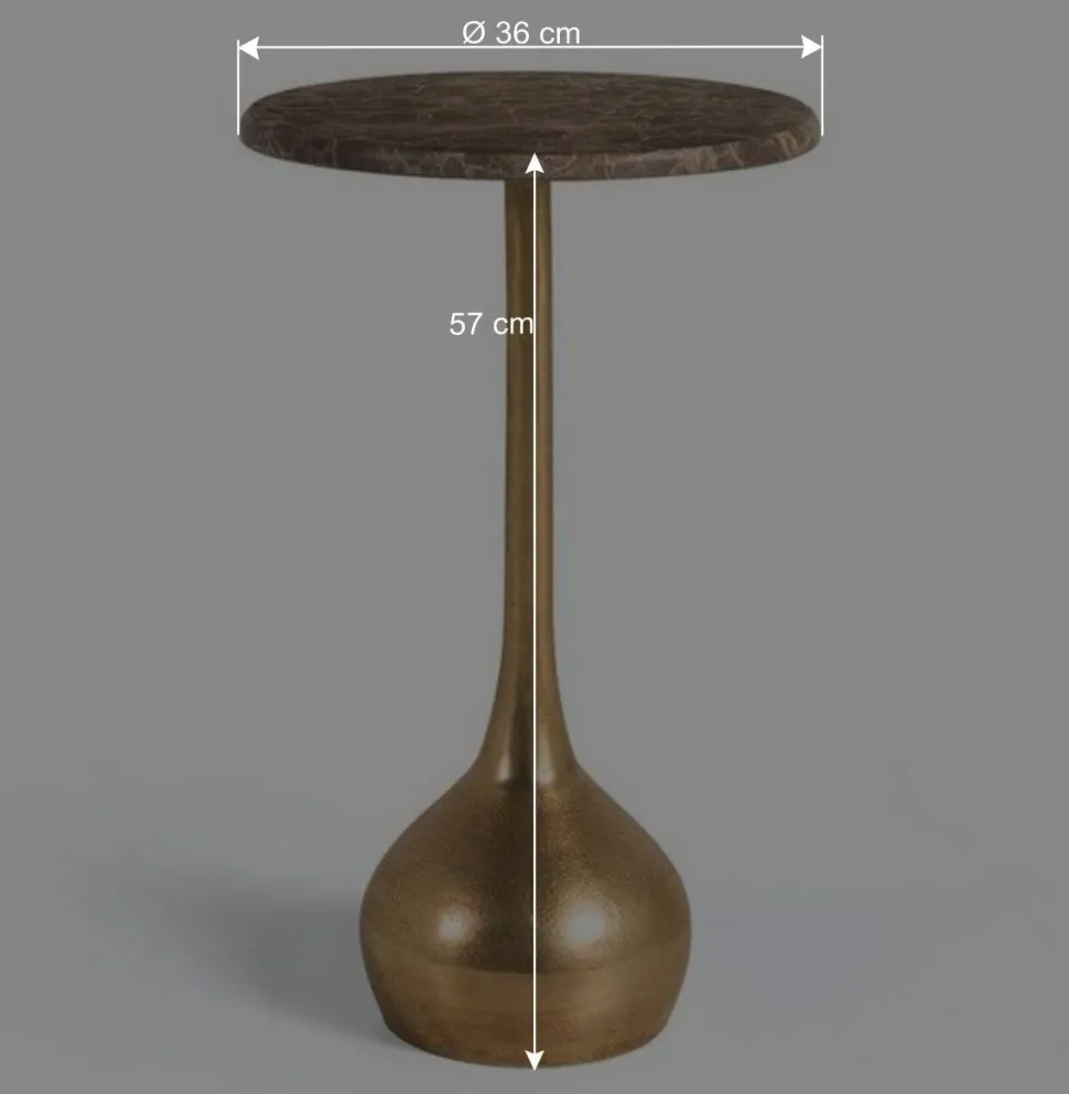 Die Tischplatte aus braunem Marmor überzeugt nicht nur durch ihre edle Optik, sondern auch durch ihre langlebige und pflegeleichte Oberfläche. Das Metallgestell in glänzendem Gold sorgt für Stabilität und eine luxuriöse Ausstrahlung. Die harmonische Kombination der Materialien macht den Beistelltisch „Luvenicos“ zu einem Blickfang, der Qualität und Design perfekt verbindet.