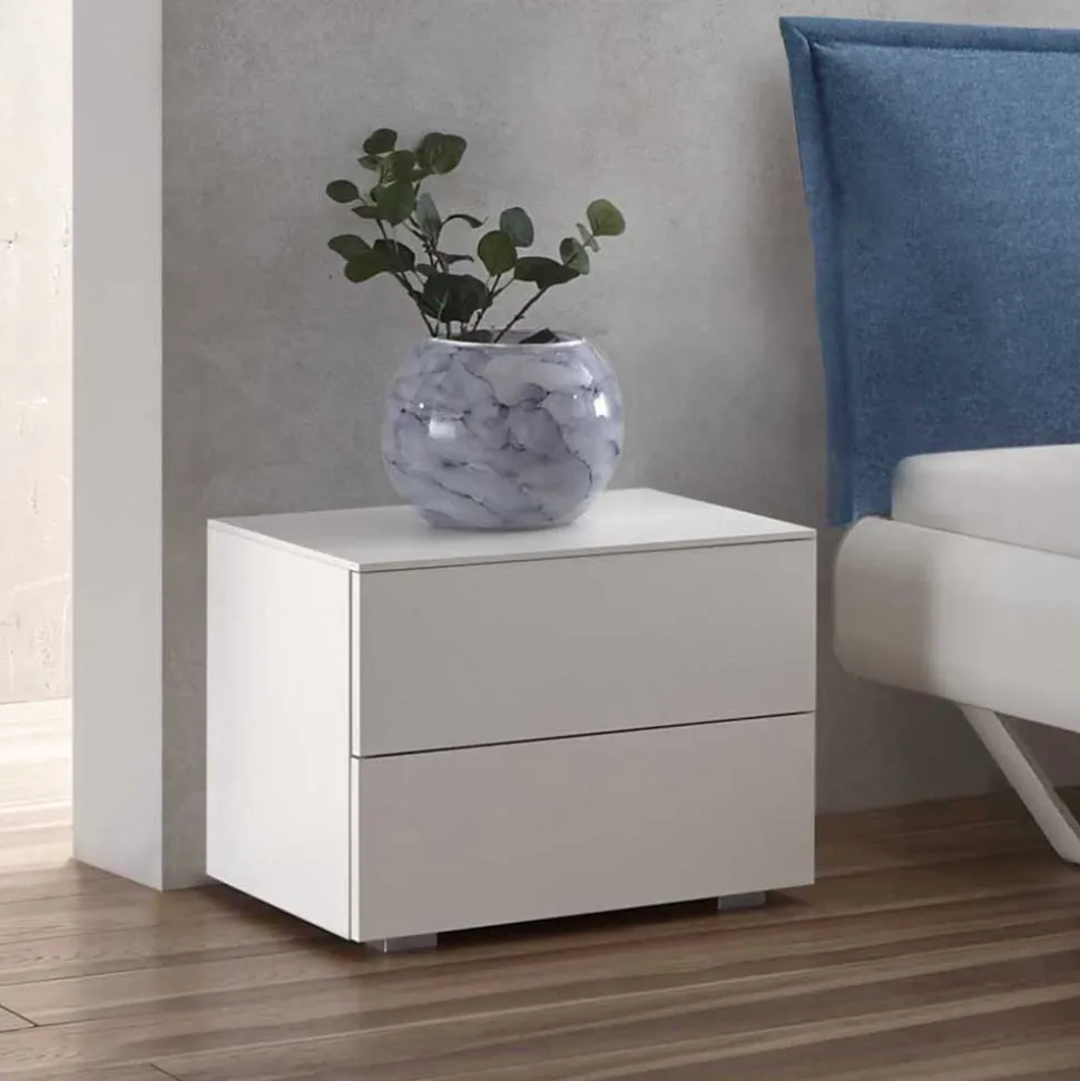 Zu diesem Bett gehören zwei stilvolle Nachtkommoden mit zwei Schubladen, die dank Metall-Selbsteinzug, Push-to-open und Soft-Close Funktion sowohl funktional als auch ästhetisch überzeugen. Die flachen Kunststofffüße in Alufarben runden das Gesamtbild ab und bieten eine harmonische Ergänzung zur Gesamtstruktur.