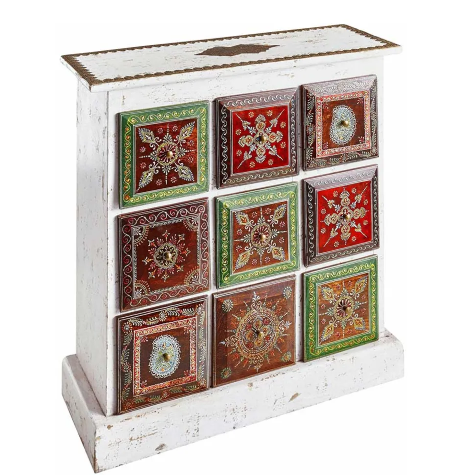 Sie möchten Ihrem Zuhause eine Prise Eleganz und Extravaganz verleihen? Dann ist unsere Design Kommode „Couras“ genau das Richtige für Sie. In einem phantasievollen Mix aus Antikweiß und bunten Farbtupfern ist diese Kommode ein wahrer Blickfang in jedem Raum.